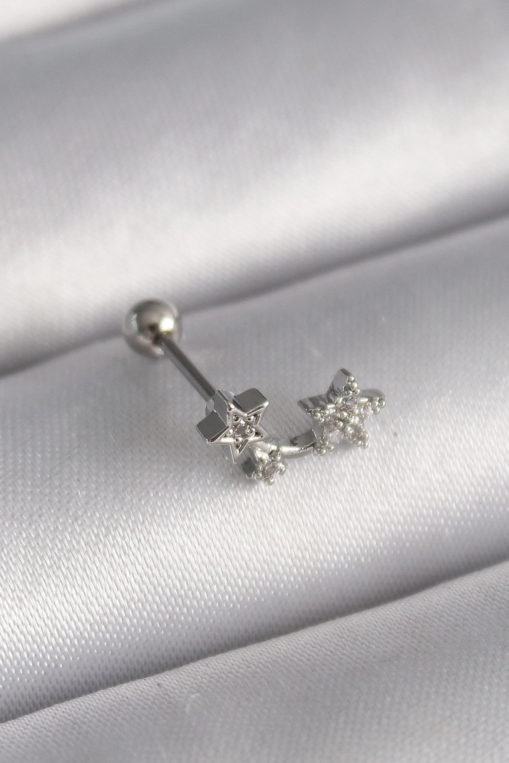 316L Çelik Gümüş Renk Zirkon Taşlı Yıldız Model Tragus Piercing