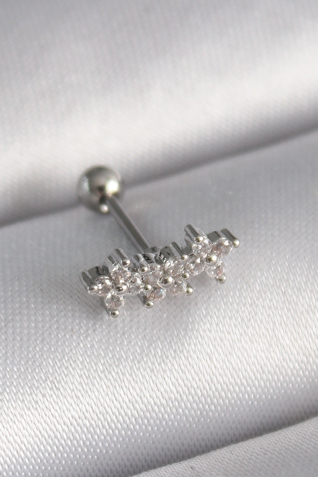 316L Çelik Gümüş Renk Zirkon Taşlı Yonca Tragus Piercing