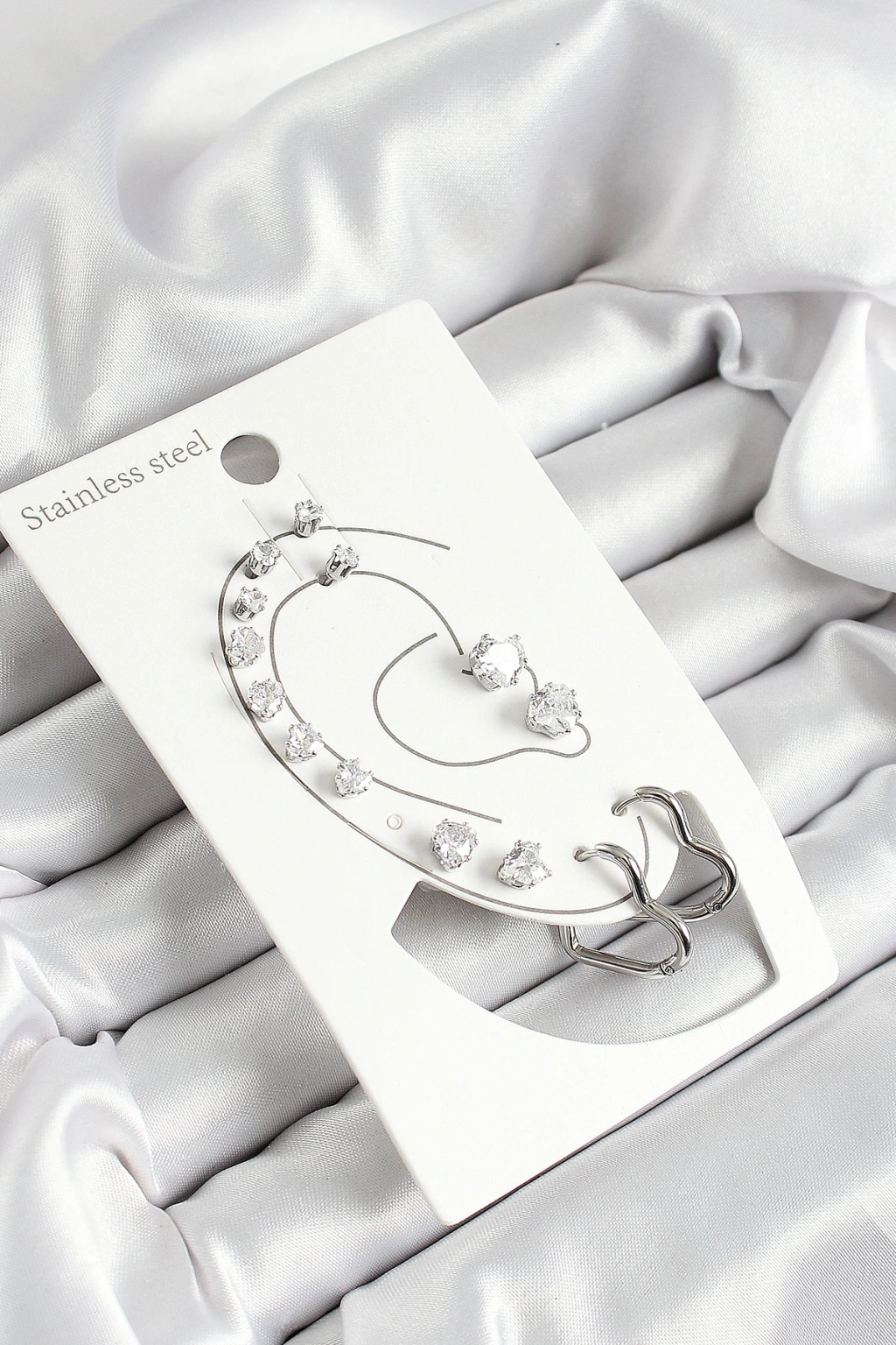 316l Çelik Kalp Figürlü Ve Zirkon Taşlı Gümüş Renk 7'li Çift Kadın Küpe Set