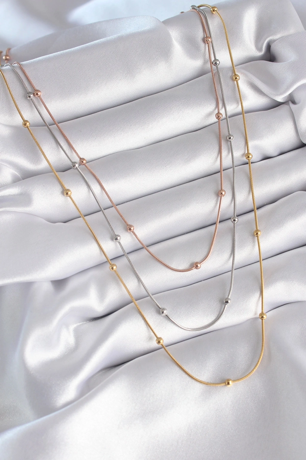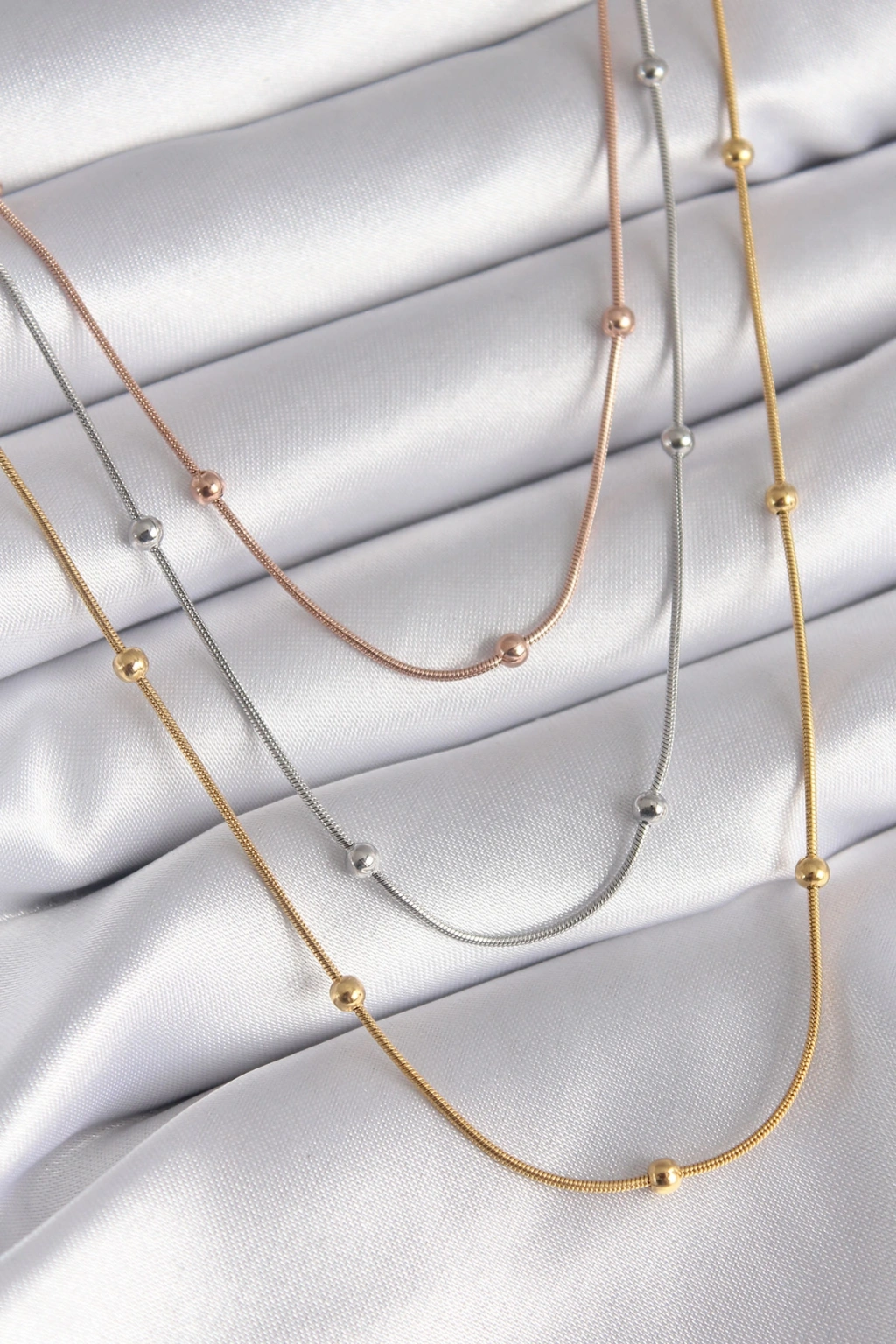 316L Çelik Mix Renk 3'lü Topçuk Detay Kadın Kolye