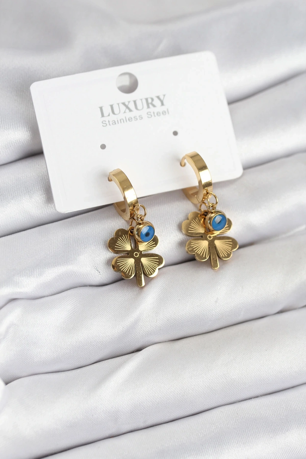 316l Çelik Nazarlı Yonca Model Kadın Küpe
