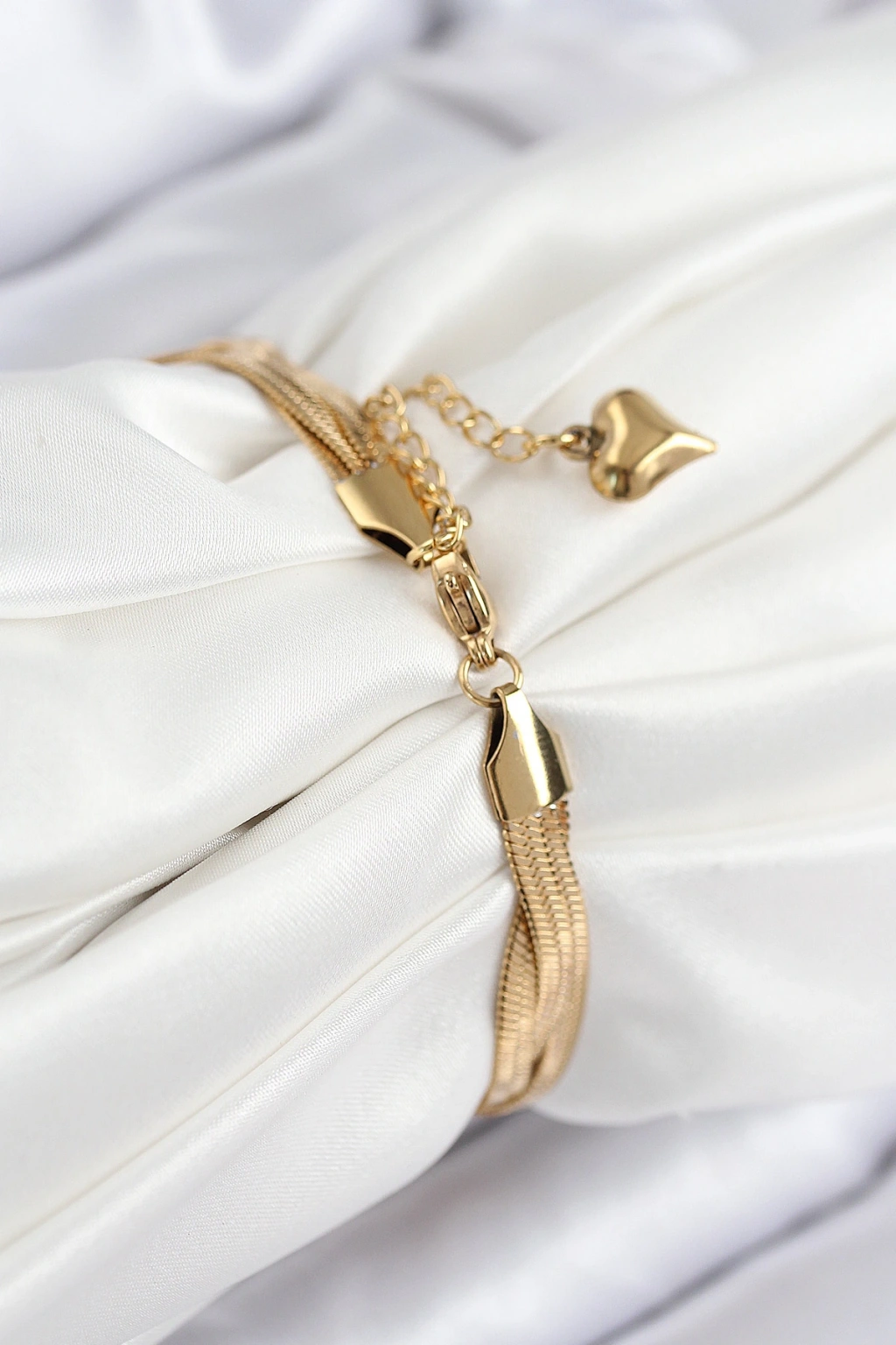 14K Gold Renk Kaplama Ezme Yılan Zincir Model CM Kadın Bileklik