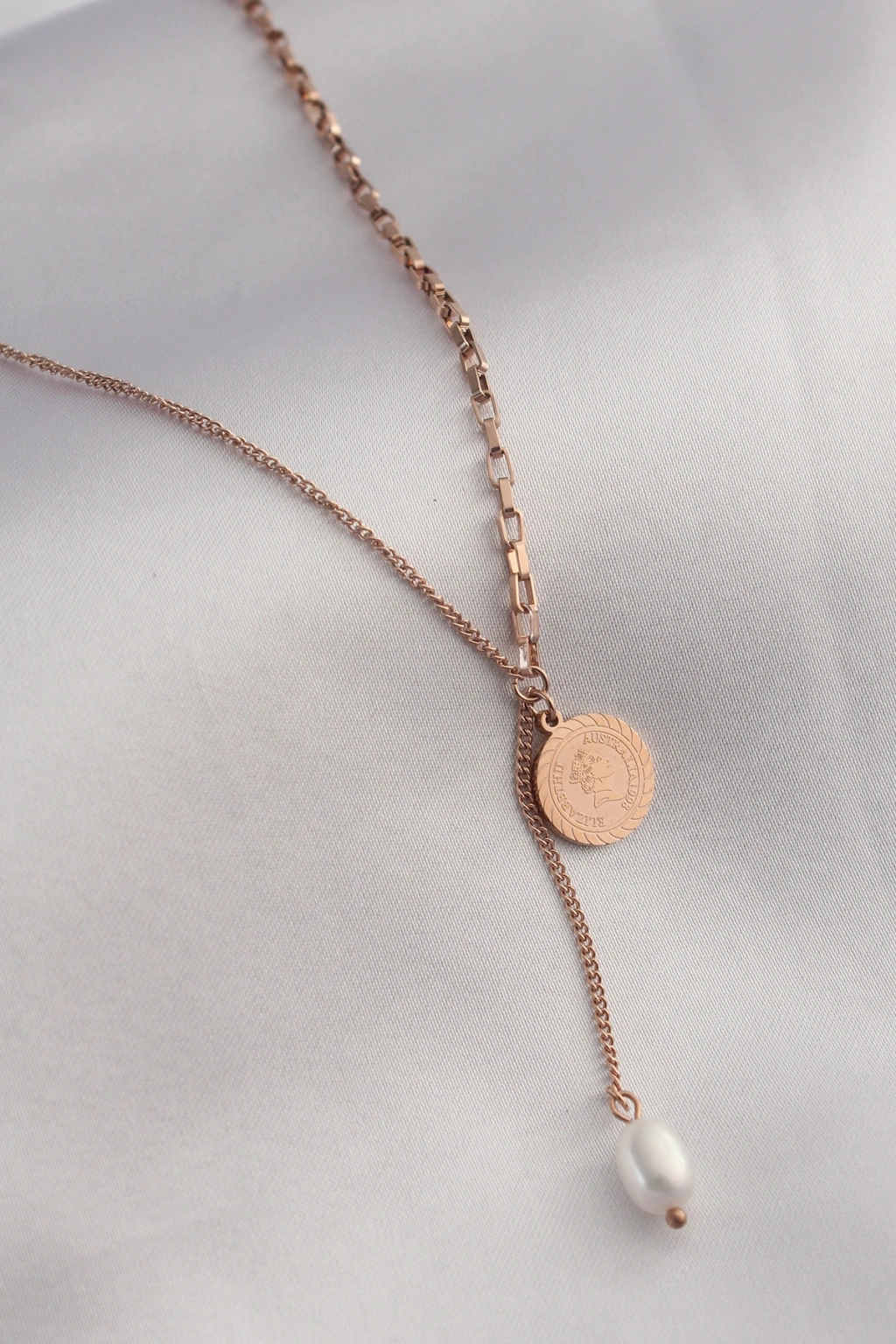316L Çelik Rose Renk İşlemeli Sallantılı Kadın Kolye