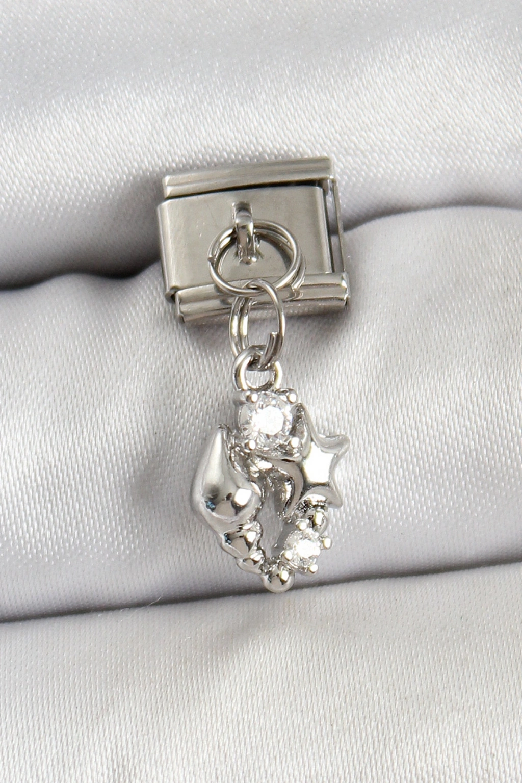 316L Çelik Sallantılı Zirkon Taşlı Deniz Yıldızı Ve İstiridye Model Gümüş Renk Nomination Charm