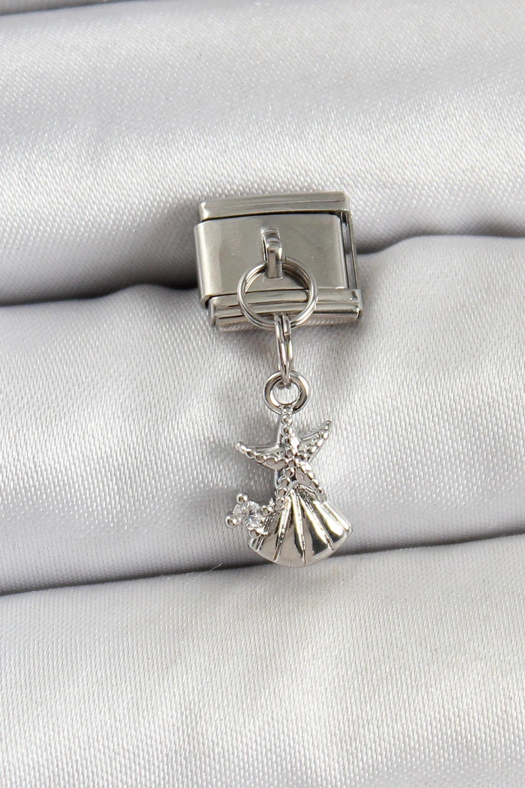 316L Çelik Sallantılı Zirkon Taşlı Deniz Kabuğu Ve Yıldız Model Gümüş Renk Nomination Charm