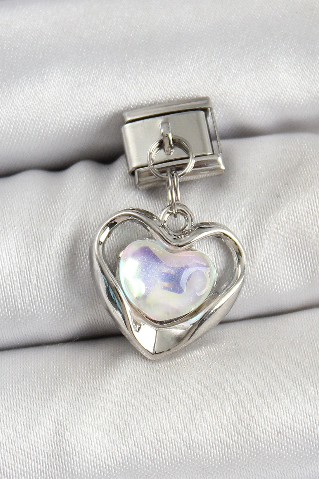 316L Çelik Sallantılı Zirkon Taşlı Kalp Model Gümüş Renk Nomination Charm