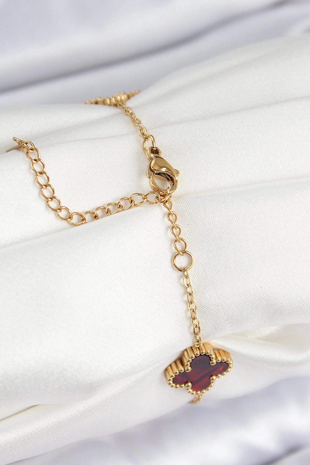 316l Çelik Sedefli Kırmızı Gold Renk Yonca Kadın Bileklik
