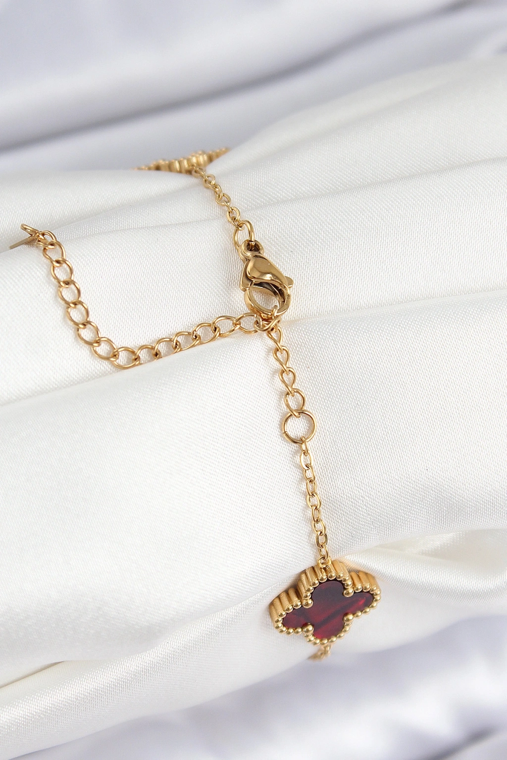 316L Çelik Sedefli Kırmızı Gold Renk Yonca Kadın Bileklik