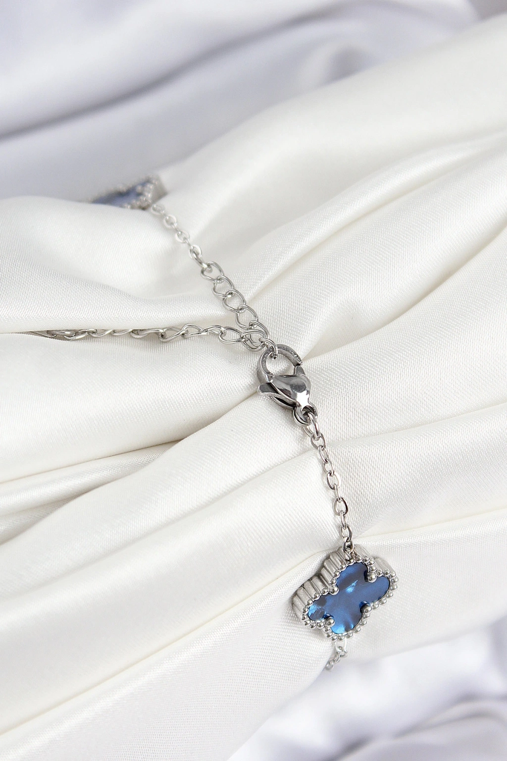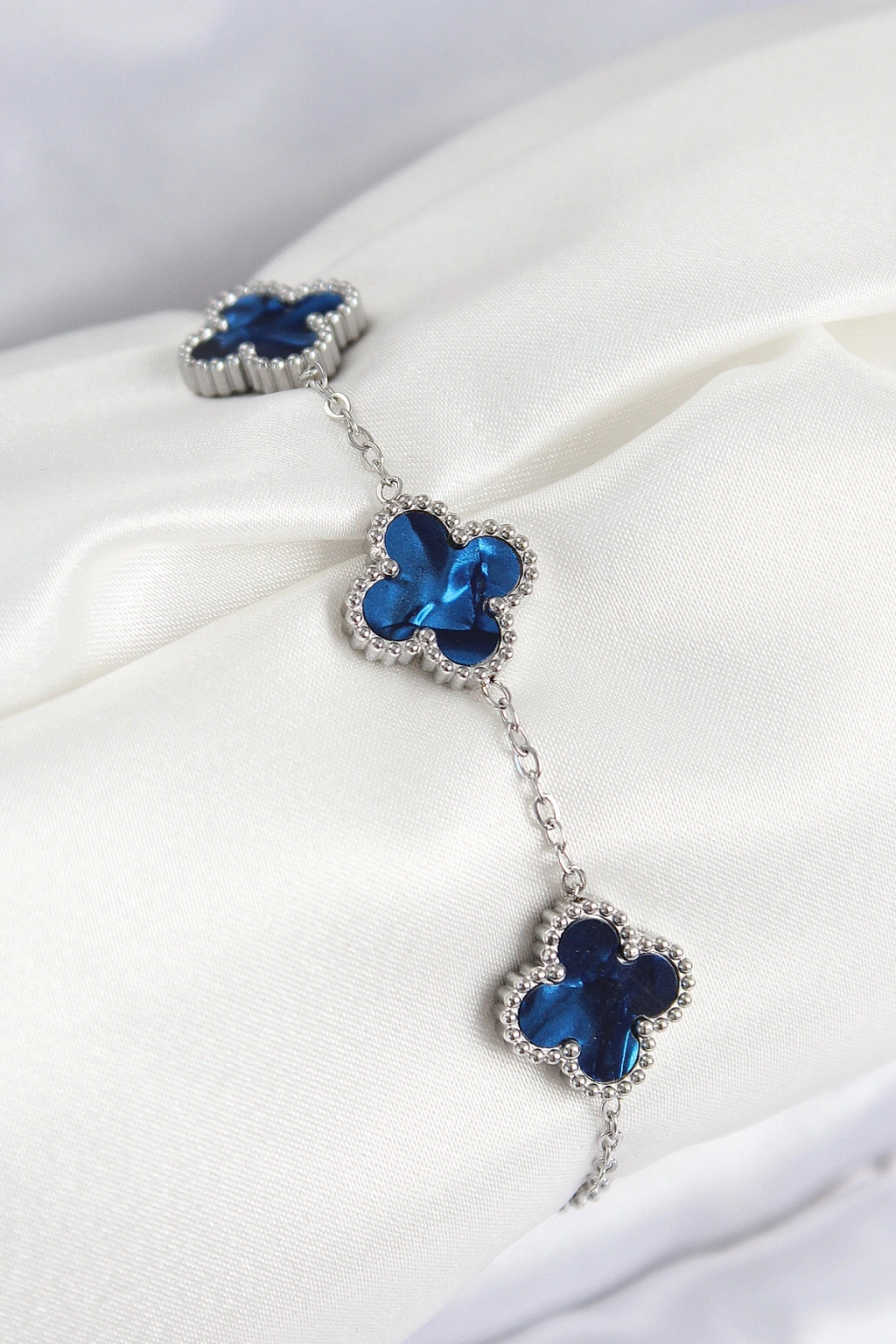 316l Çelik Sedefli Lacivert Gümüş Renk Yonca Kadın Bileklik