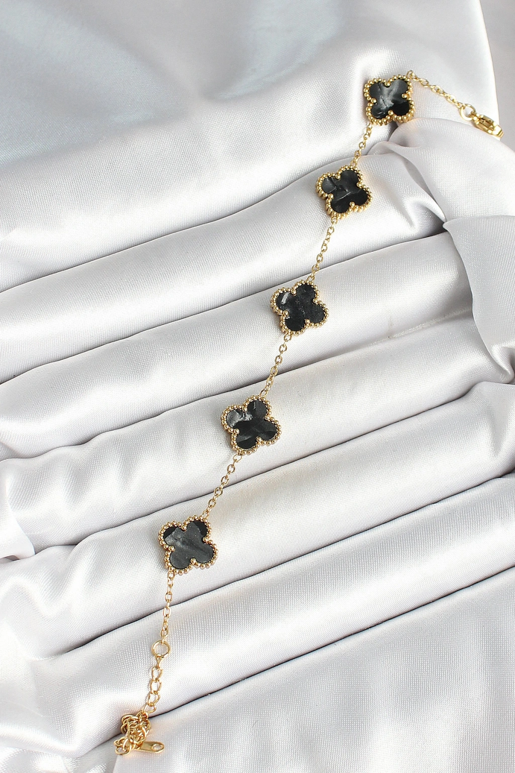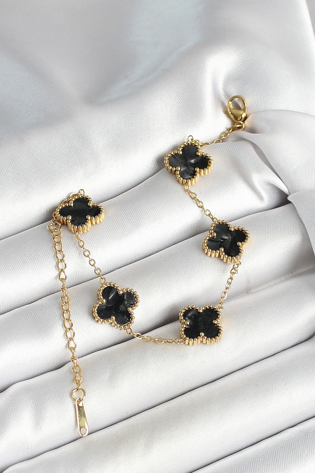 316L Çelik Sedefli Siyah Gold Renk Yonca Kadın Bileklik