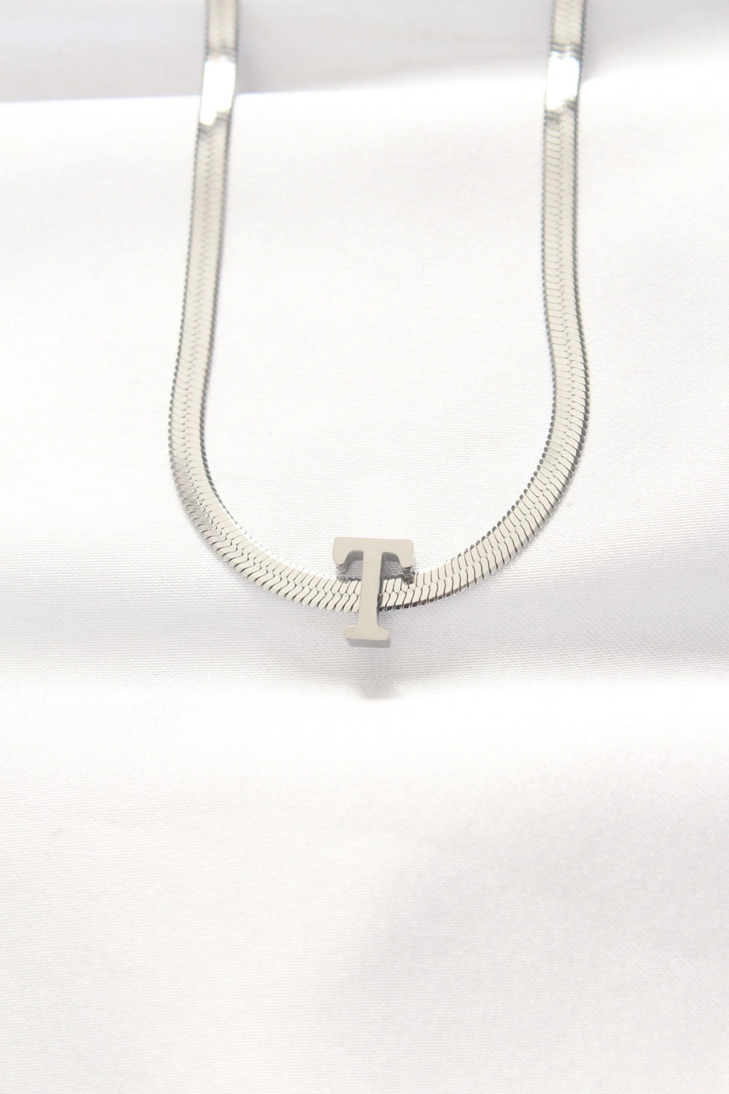 316l Çelik T Harfli Silver Renk İtalyan Zincirli Kolye