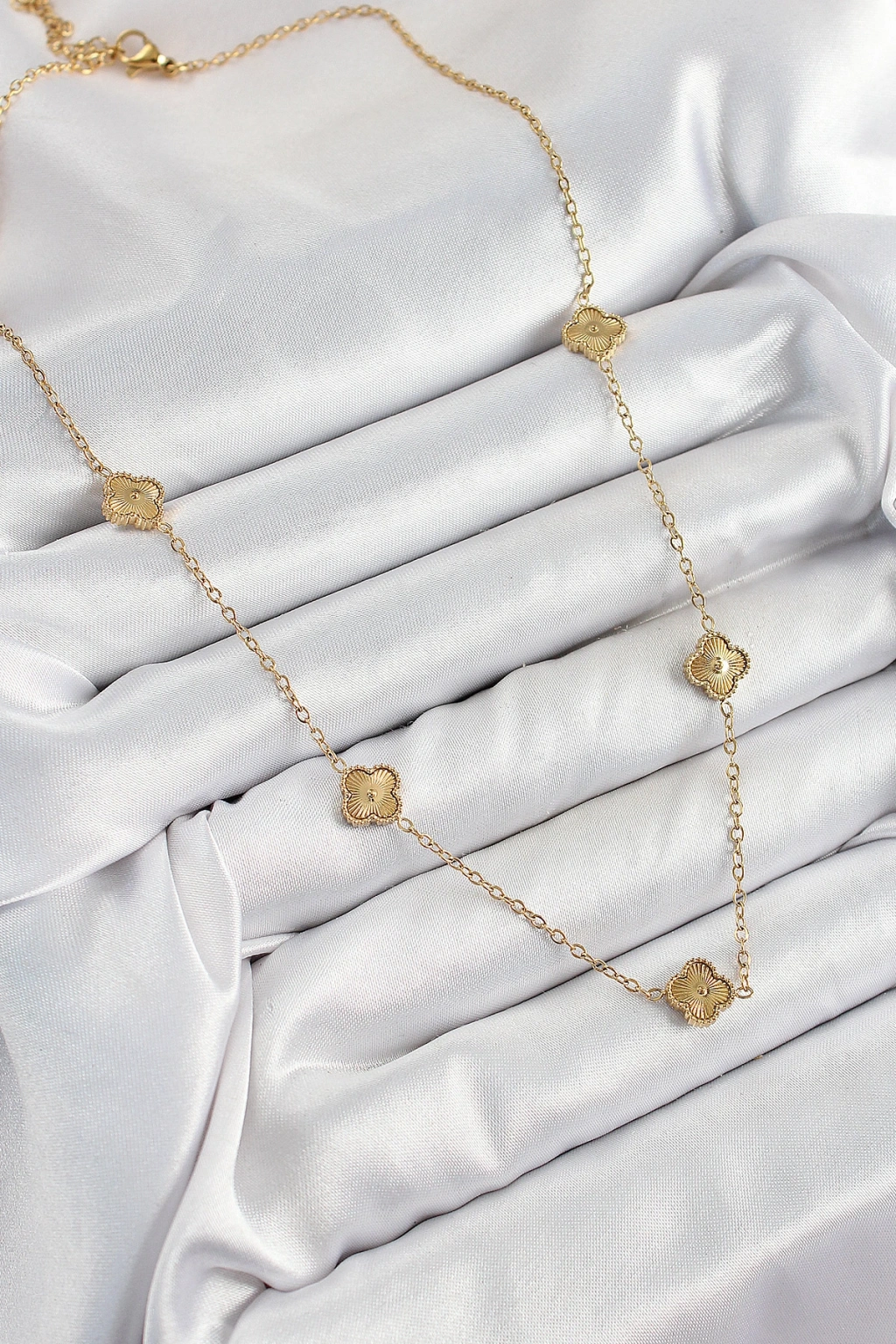 316l Çelik Yonca Model Gold Renk Kadın Kolye