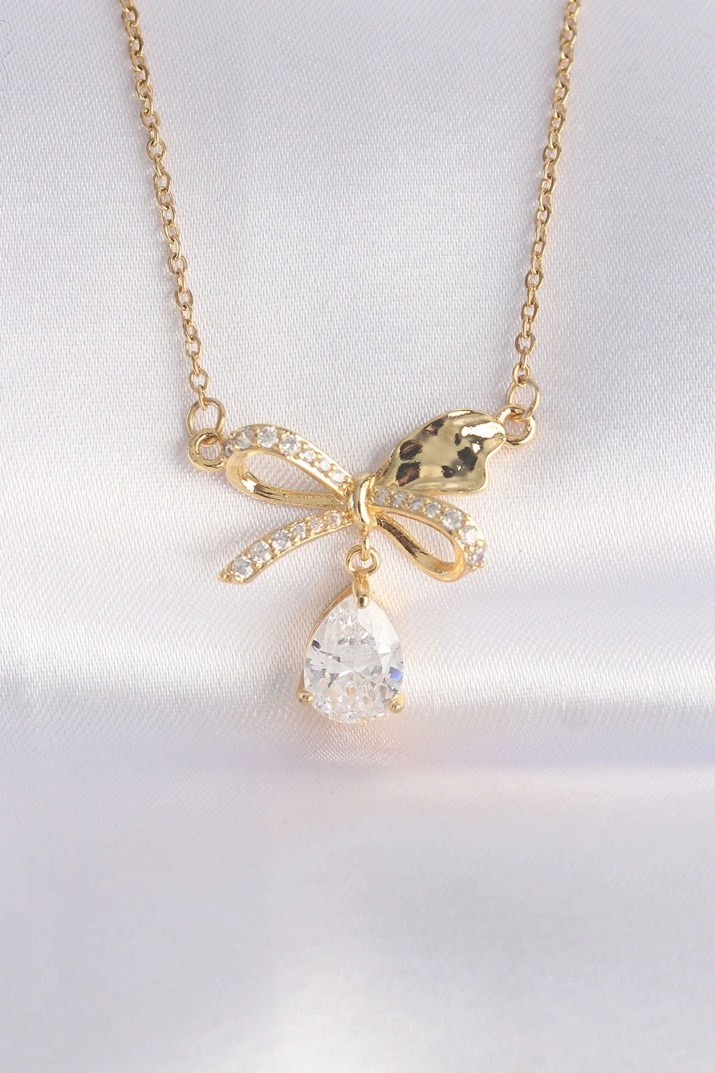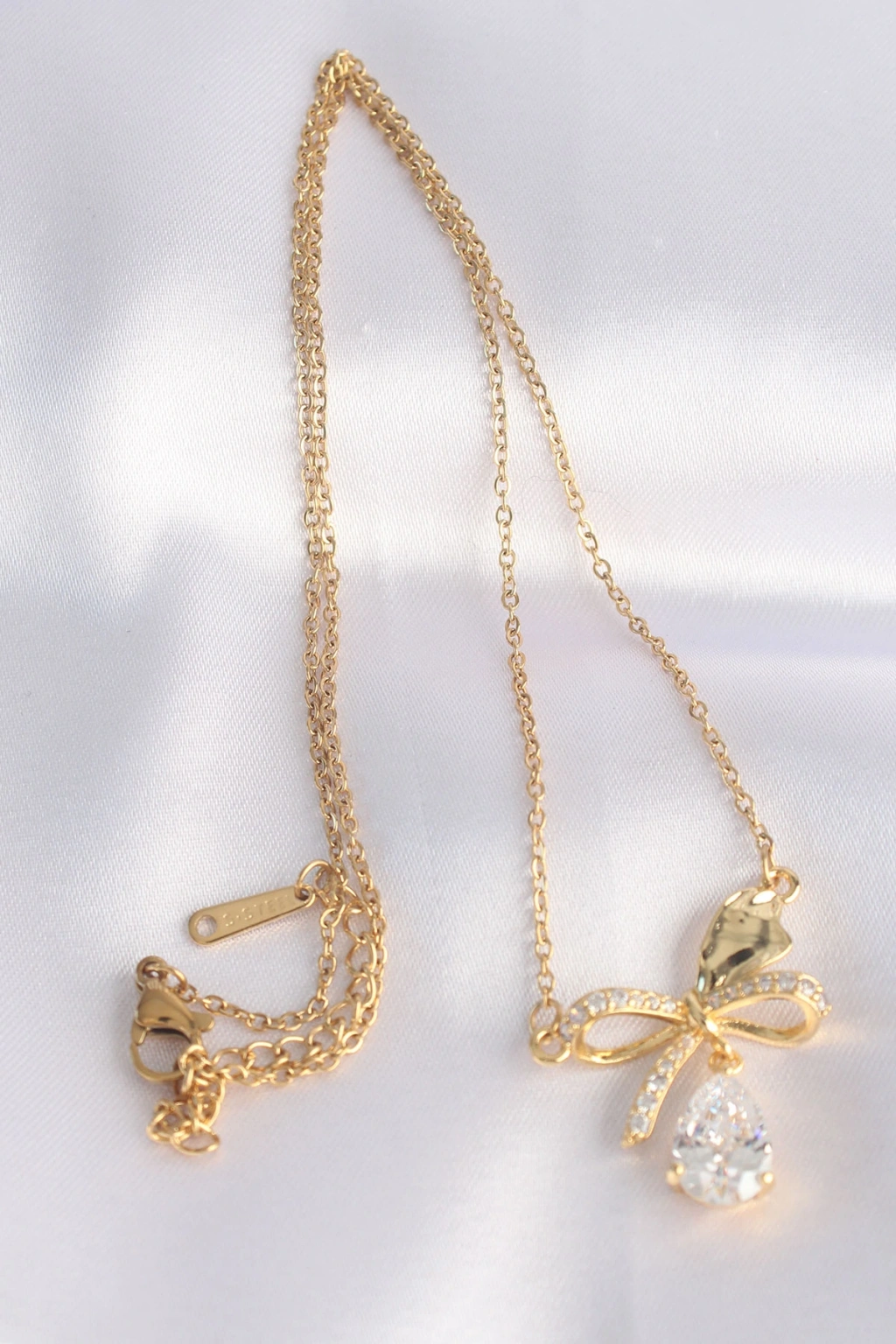 316l Çelik Zincir Altın Renk Zirkon Taşlı Damla Detay Fiyonk Kolye