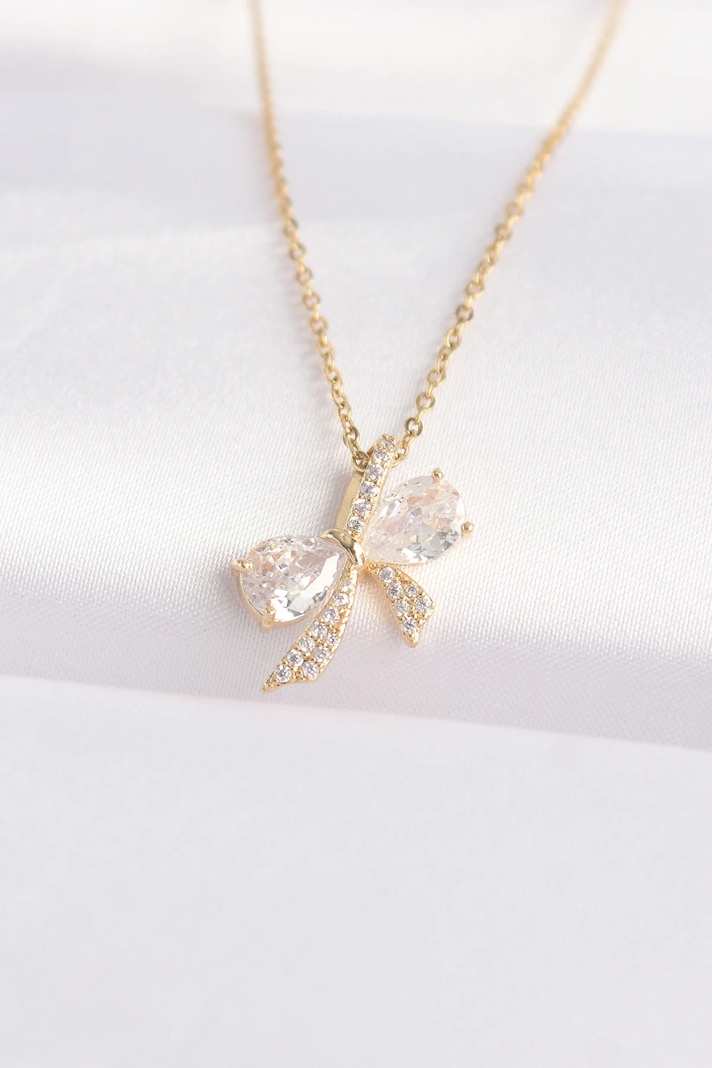 316l Çelik Zincir Altın Renk Zirkon Taşlı Fiyonk Kolye