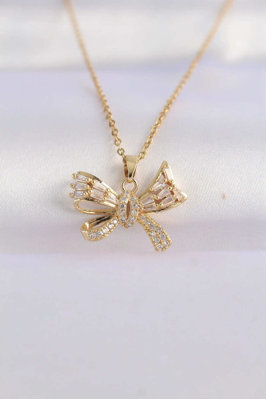 316l Çelik Zincir Altın Renk Zirkon Taşlı Fiyonk Kolye
