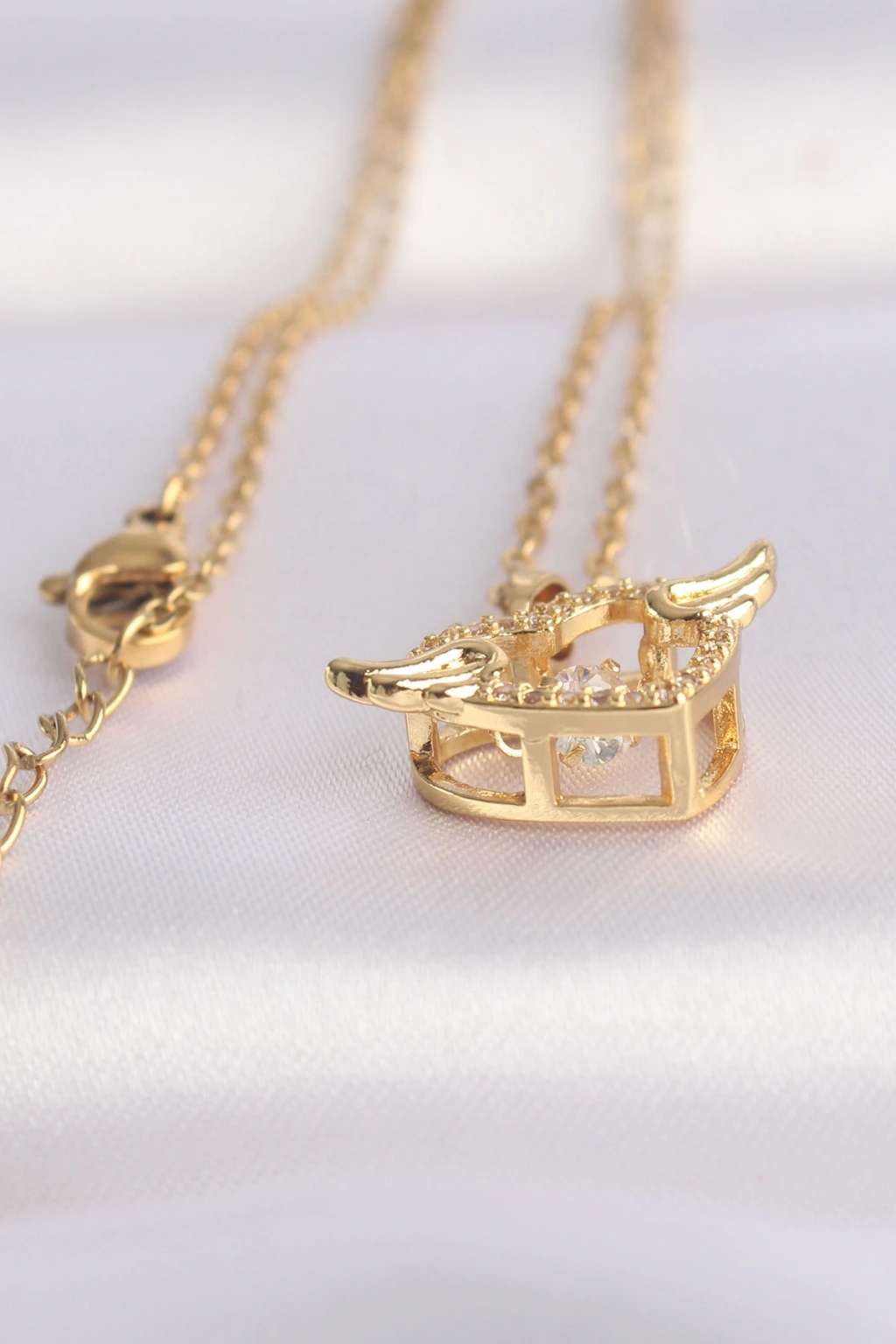 316L Çelik Zincir Altın Renk Zirkon Taşlı Kanatlı Kalp Kolye