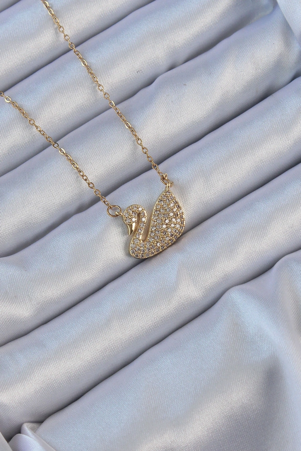 316l Çelik Zincir Altın Renk Zirkon Taşlı Kuğu Kolye