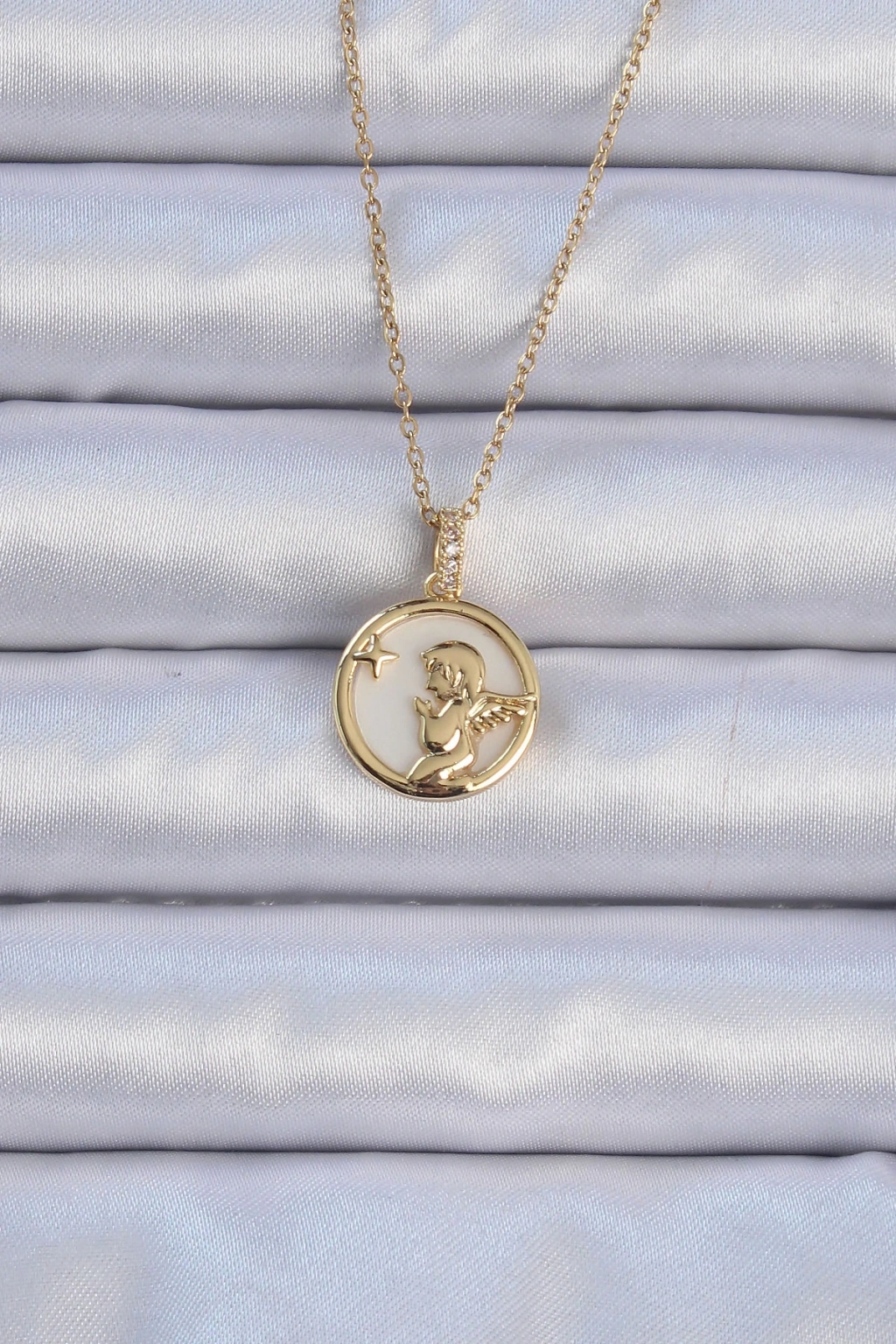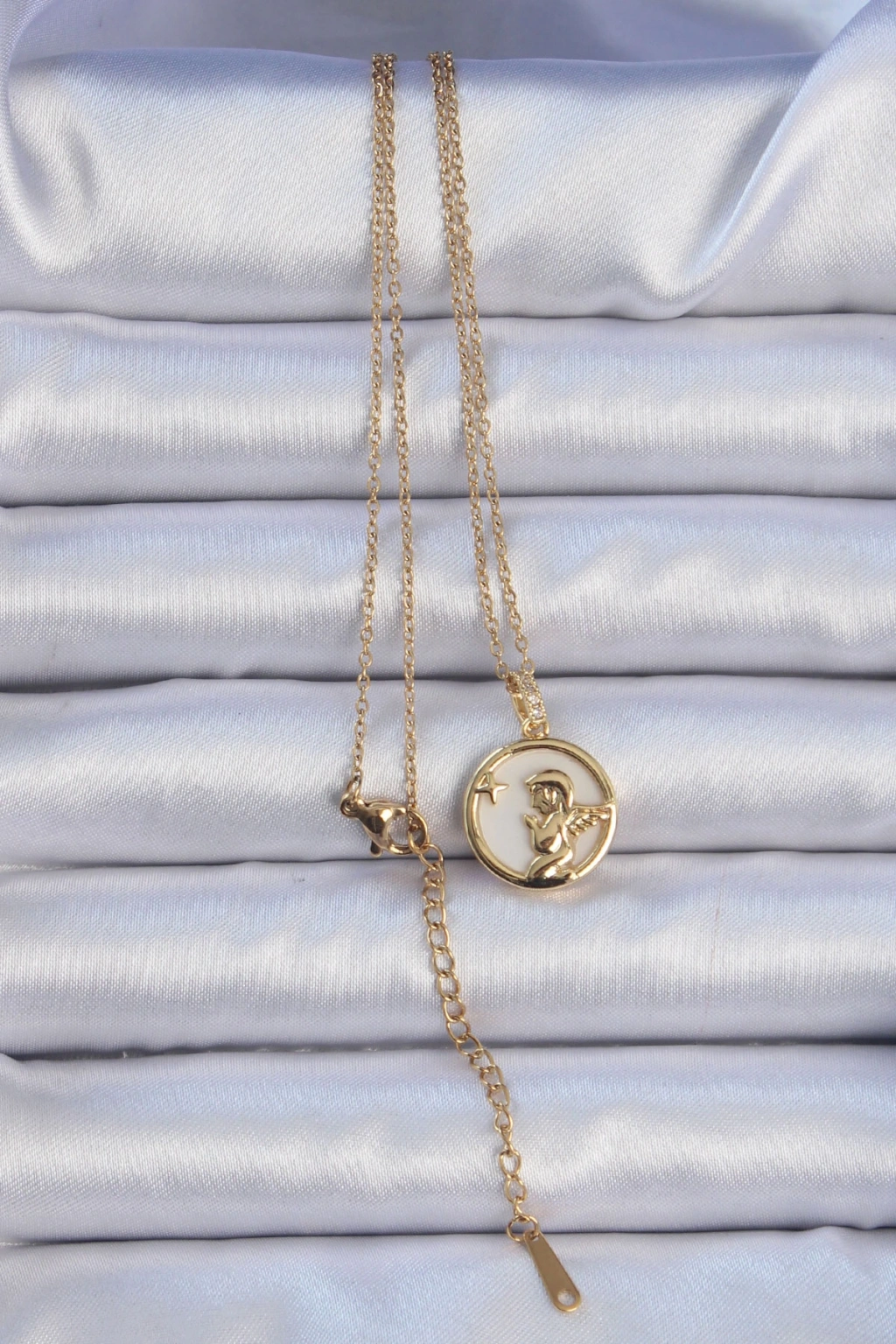 316L Çelik Zincir Altın Renk Zirkon Taşlı Mineli Melek Kolye