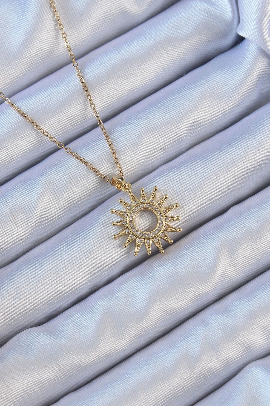 316l Çelik Zincir Altın Renk Zirkon Taşlı Parlayan Güneş Kolye