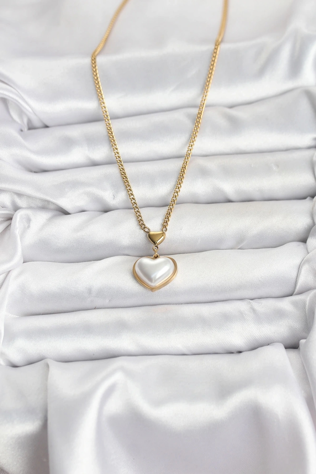 316l Çelik Zincir Gold Renk Bombeli Kalp Model Kadın Kolye
