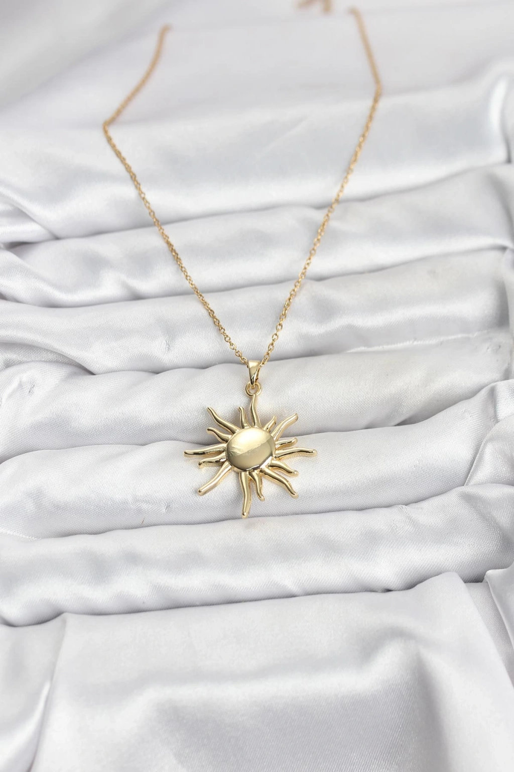 316L Çelik Zincir Gold Renk Güneş Model Kadın Kolye