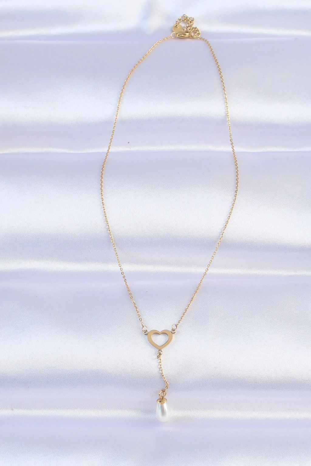 316l Çelik Zincir Gold Renk İnci Taş Detay Kalp Kolye
