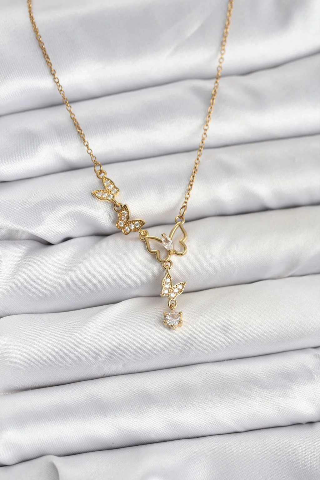 316l Çelik Zincir Gold Renk Kelebek Model Kadın Kolye