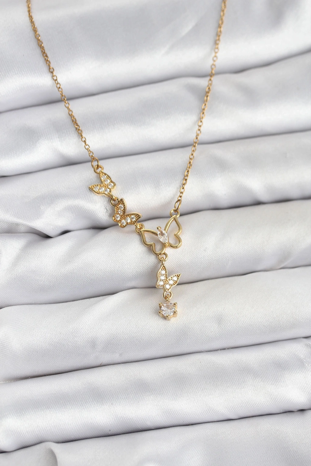 316L Çelik Zincir Gold Renk Kelebek Model Kadın Kolye