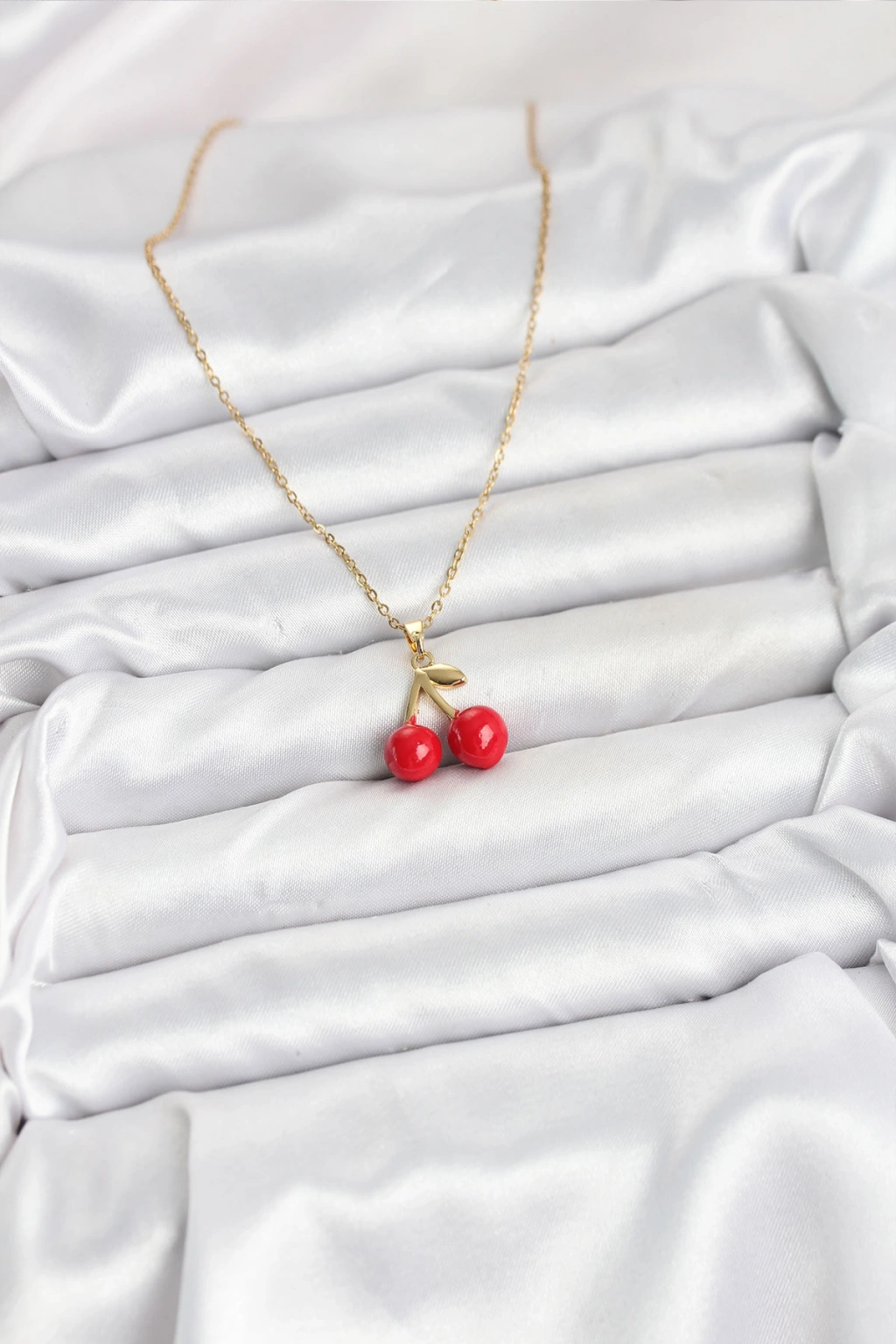 316L Çelik Zincir Gold Renk Kiraz Model Kadın Kolye