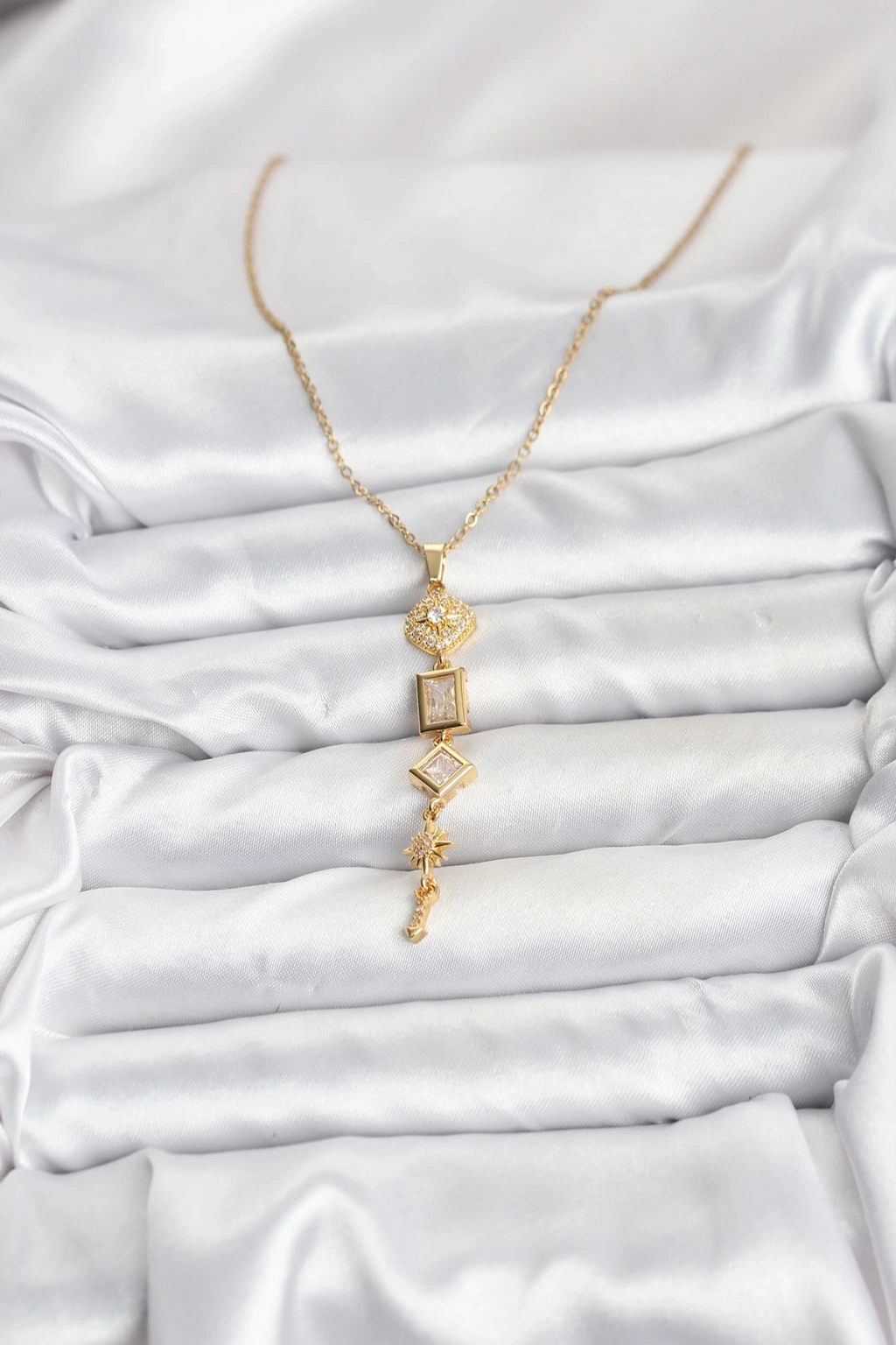 316L Çelik Gold Renk Zirkon Taşlı Kutup Yıldızı Model Kadın Kolye