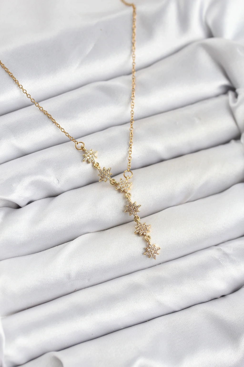 Pirinç Gold Renk Zincirli Yıldızlı Model Kadın Kolye