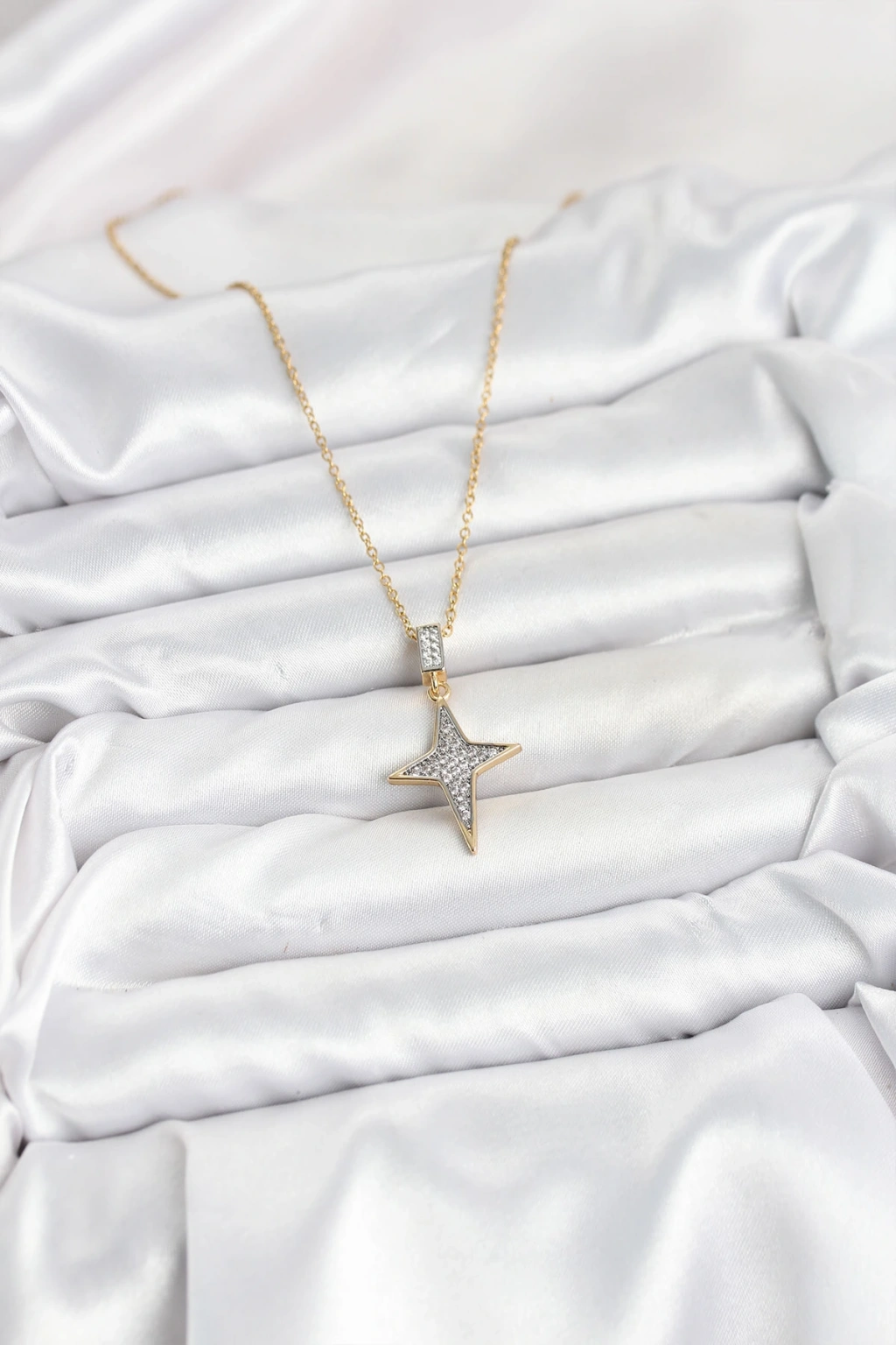 316l Çelik Zincir Gold Renk Kutup Yıldızı Model Zirkon Taşlı Kadın Kolye