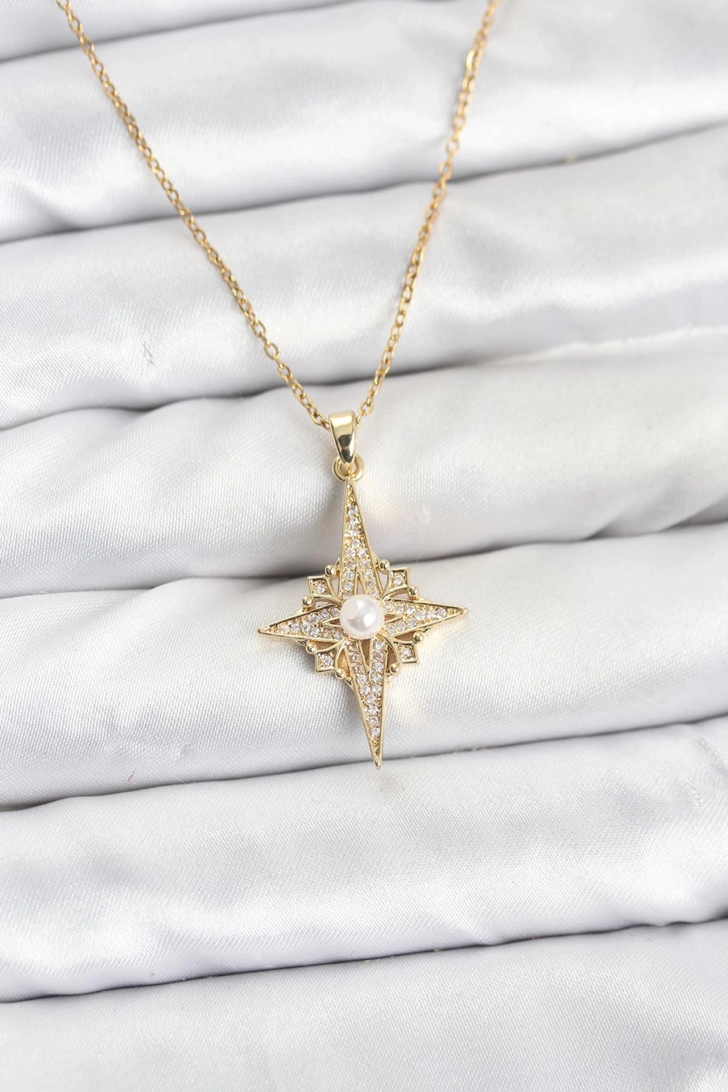 316L Çelik Zincir Gold Renk Kutup Yıldızı Model Zirkon Taşlı Kadın Kolye
