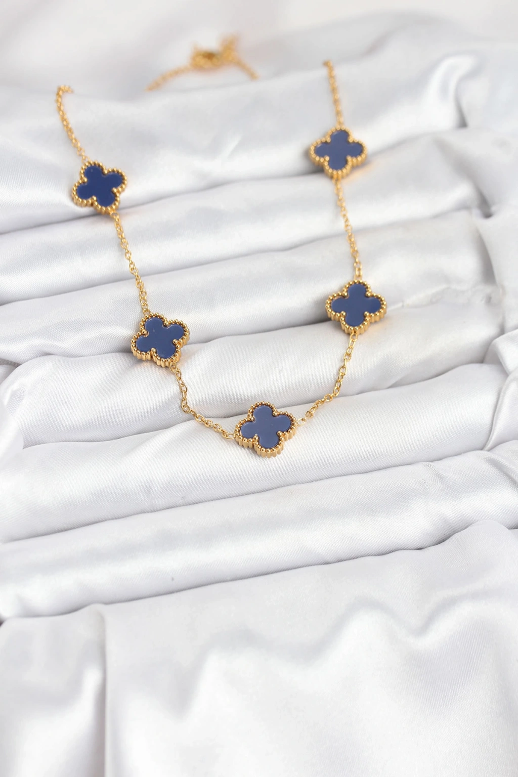 316L Çelik Zincir Gold Renk Lacivert Yonca Kadın Kolye