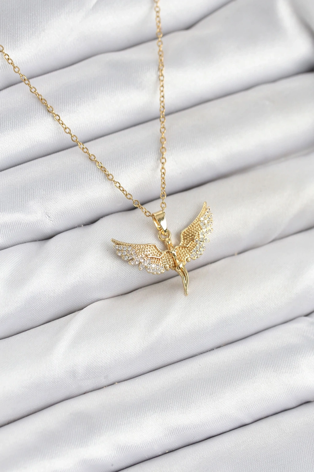 316l Çelik Zincir Gold Renk Melek Model Kadın Kolye
