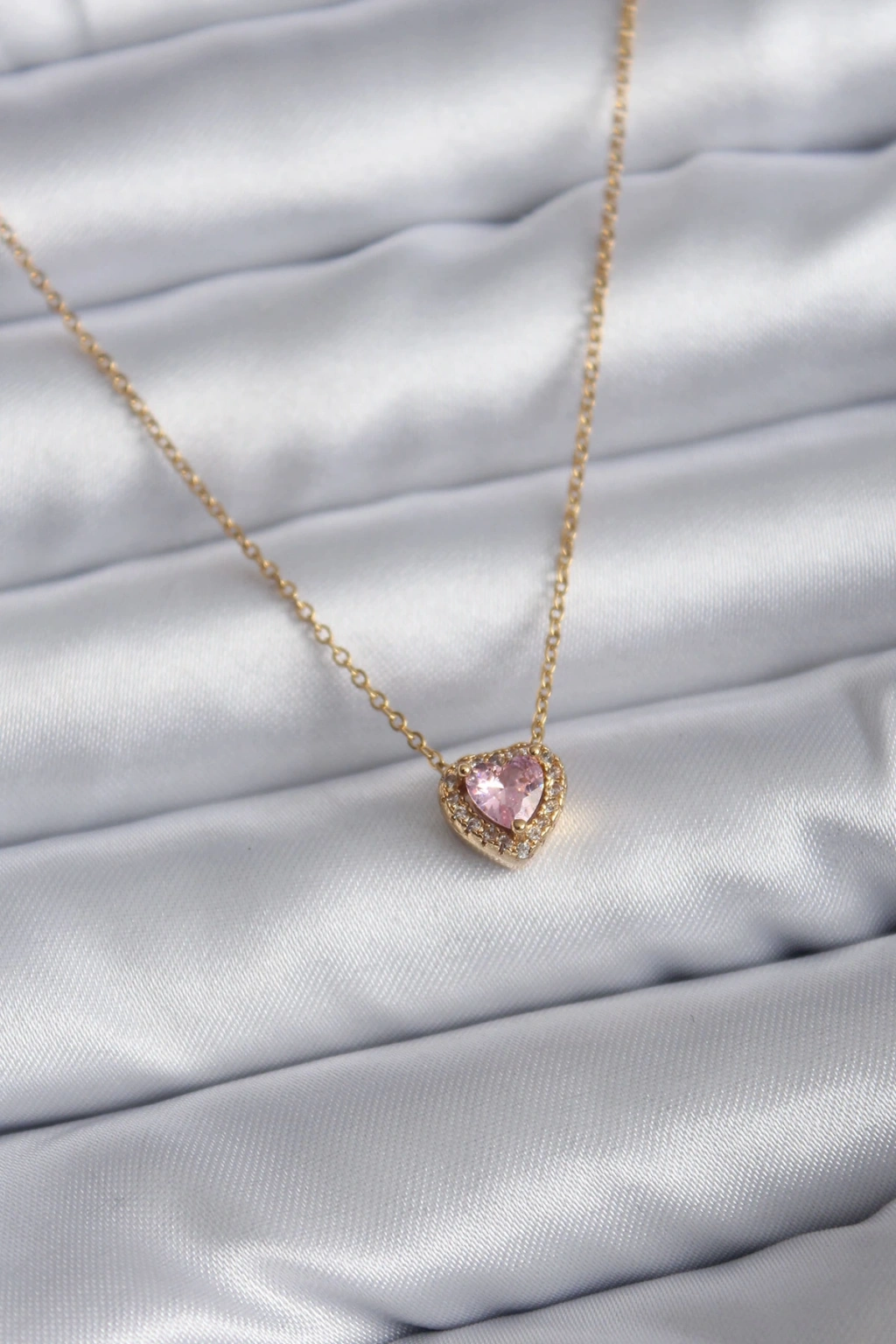 316l Çelik Zincir Gold Renk Pembe Zirkon Taşlı Charm Kadın Kolye