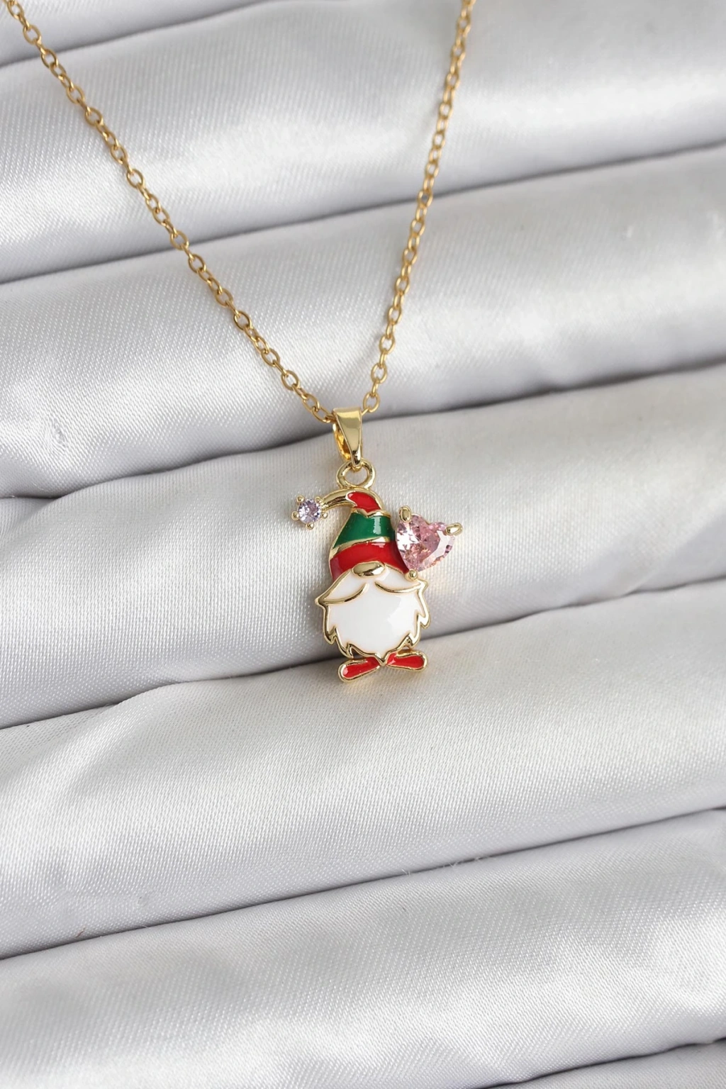 316l Çelik Zincir Gold Renk Yılbaşı Teması Kadın Kolye