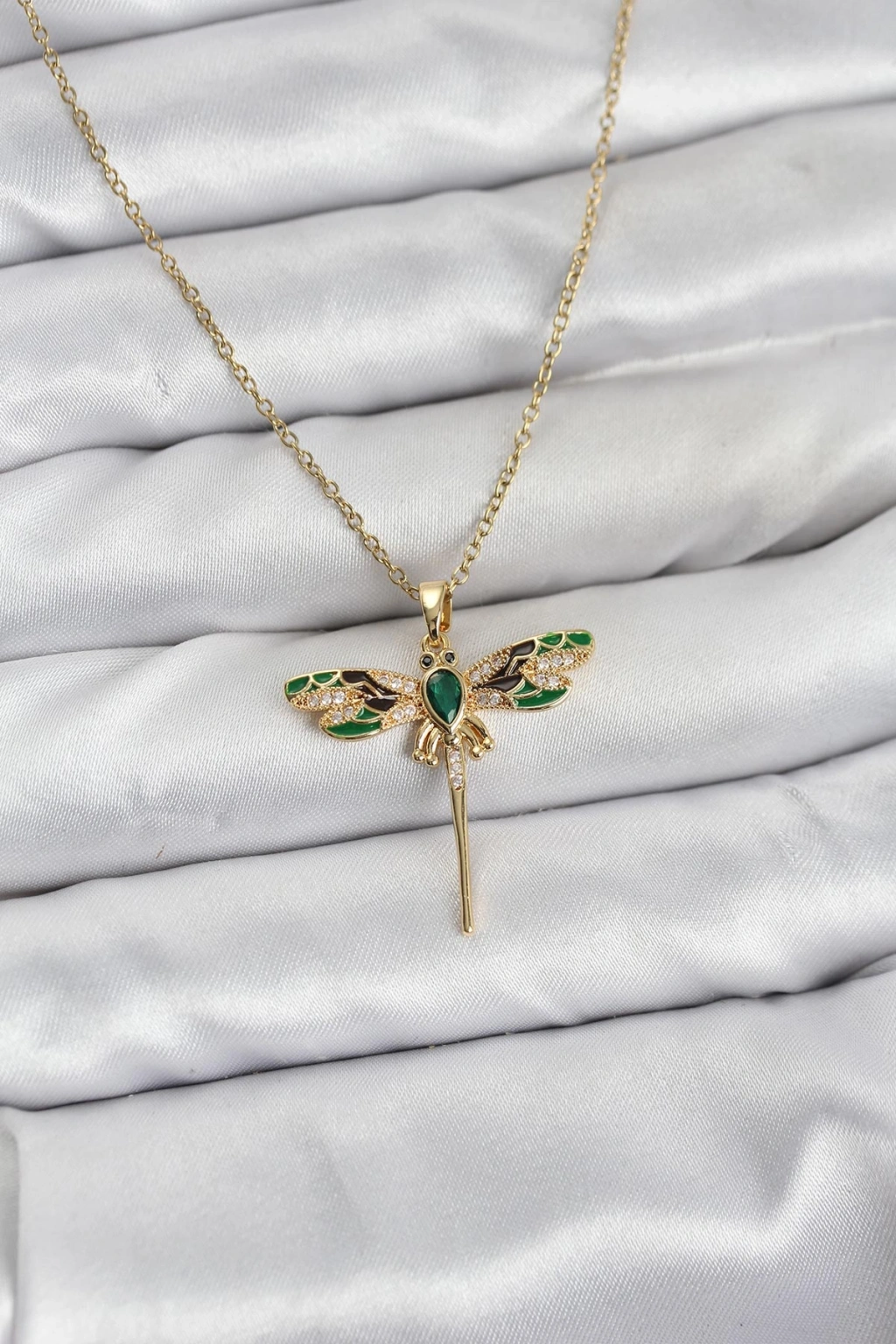 316L Çelik Zincir Gold Renk Yusufçuk Model Zirkon Taşlı Kadın Kolye