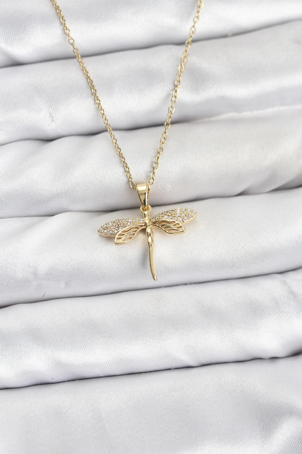 316L Çelik Zincir Gold Renk Yusufçuk Model Zirkon Taşlı Kadın Kolye