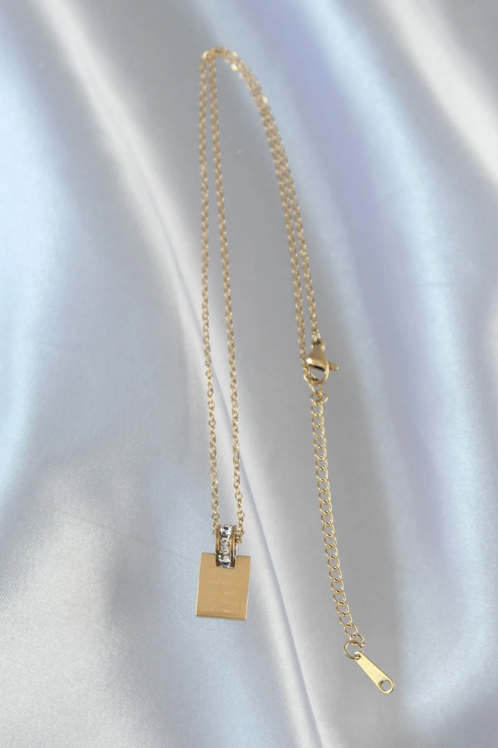 Pirinç Renkli Zirkon Taşlı Dikdörtgen Model Gold Renk Kadın Y Kolye
