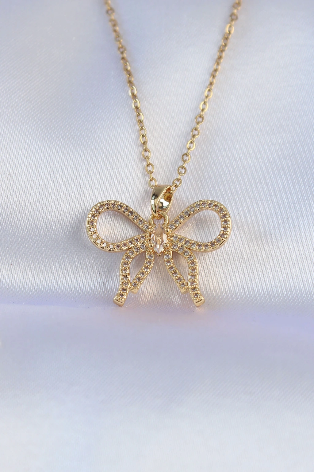 316l Çelik Zincir Gold Renk Zirkon Taşlı Fiyonk Kolye