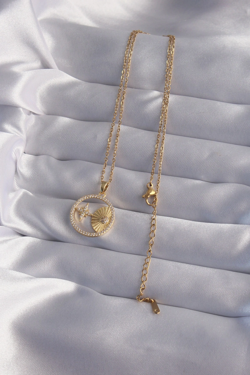 316L Çelik Zincir Gold Renk Zirkon Taşlı Yıldız Figürlü Oval Kolye