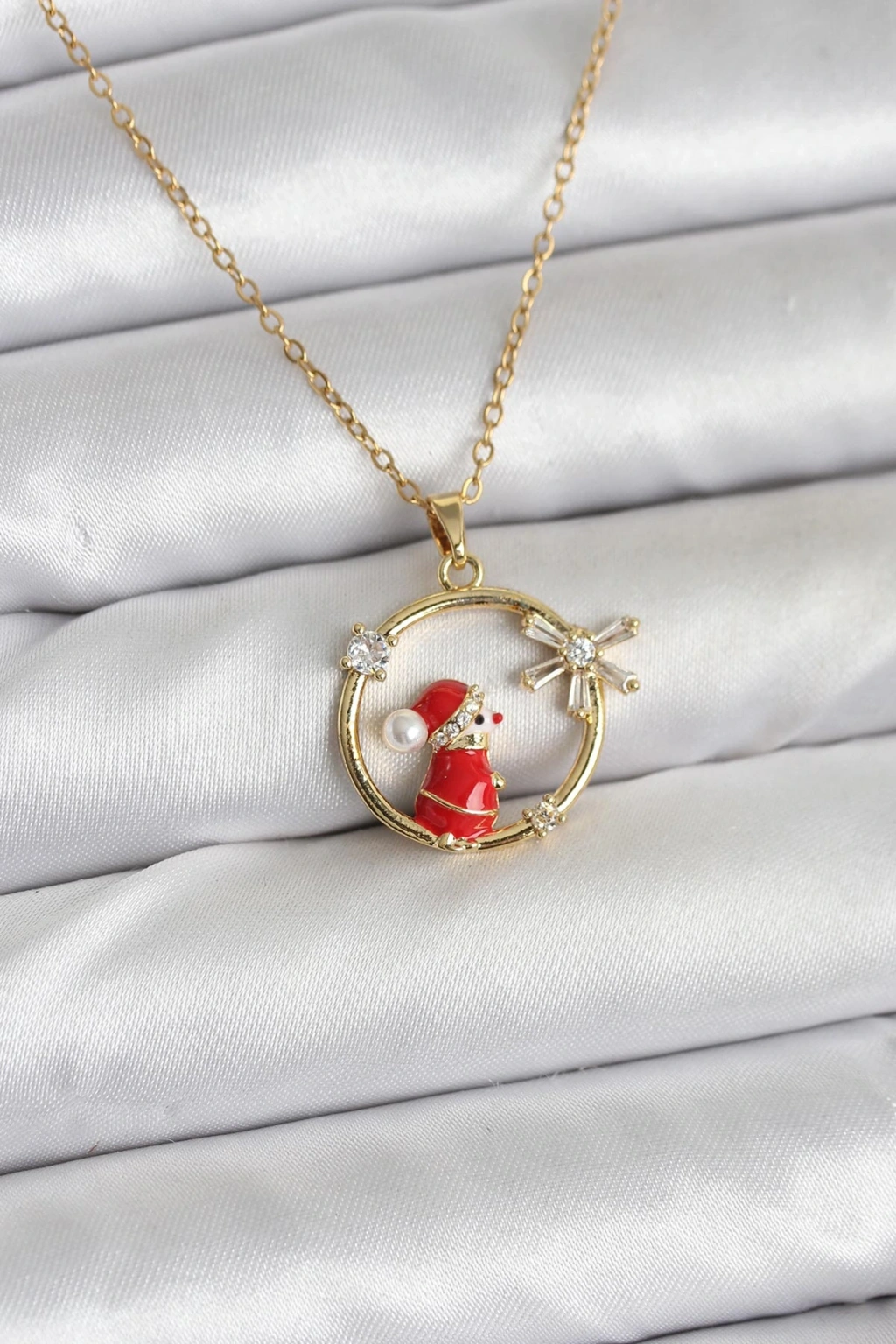 316l Çelik Zincir Gold Zirkon Taşlı Yılbaşı Tema Kadın Kolye