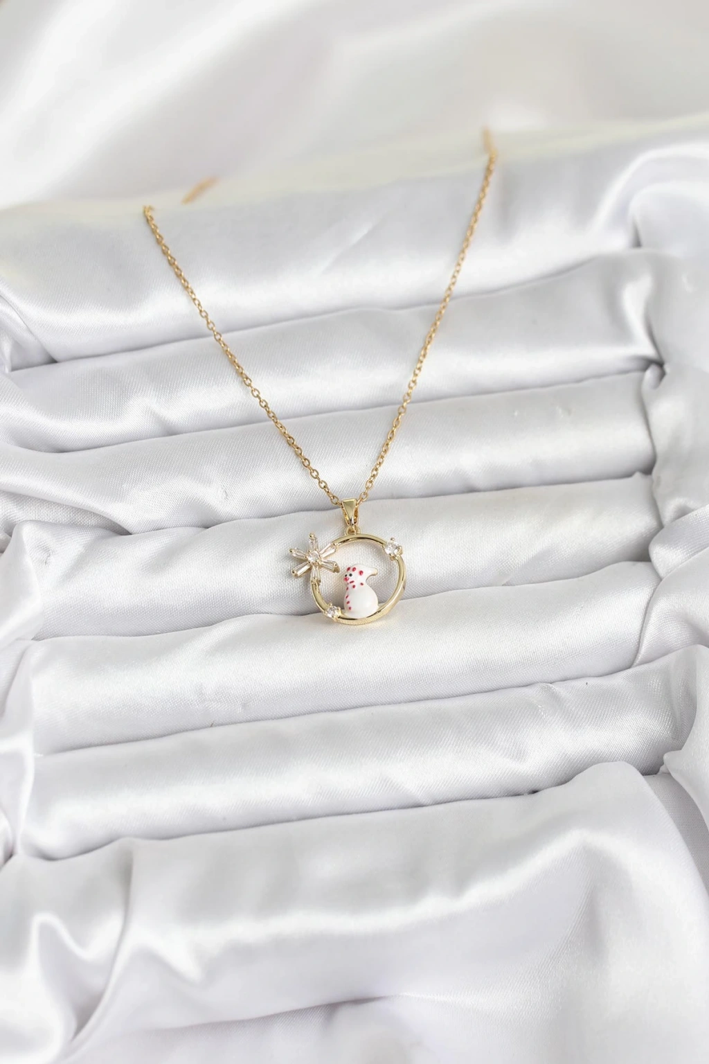 316l Çelik Zincir Gold Zirkon Taşlı Yılbaşı Temalı Kadın Kolye