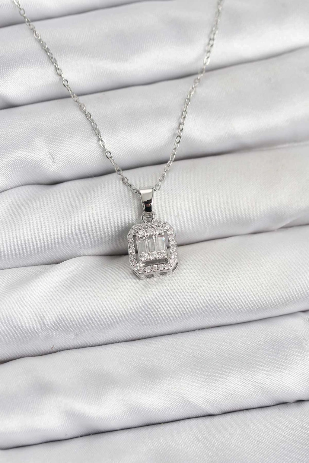 316L Çelik Zincir Gümüş Renk Şans Kolyesi Model Zirkon Taşlı Kadın Kolye