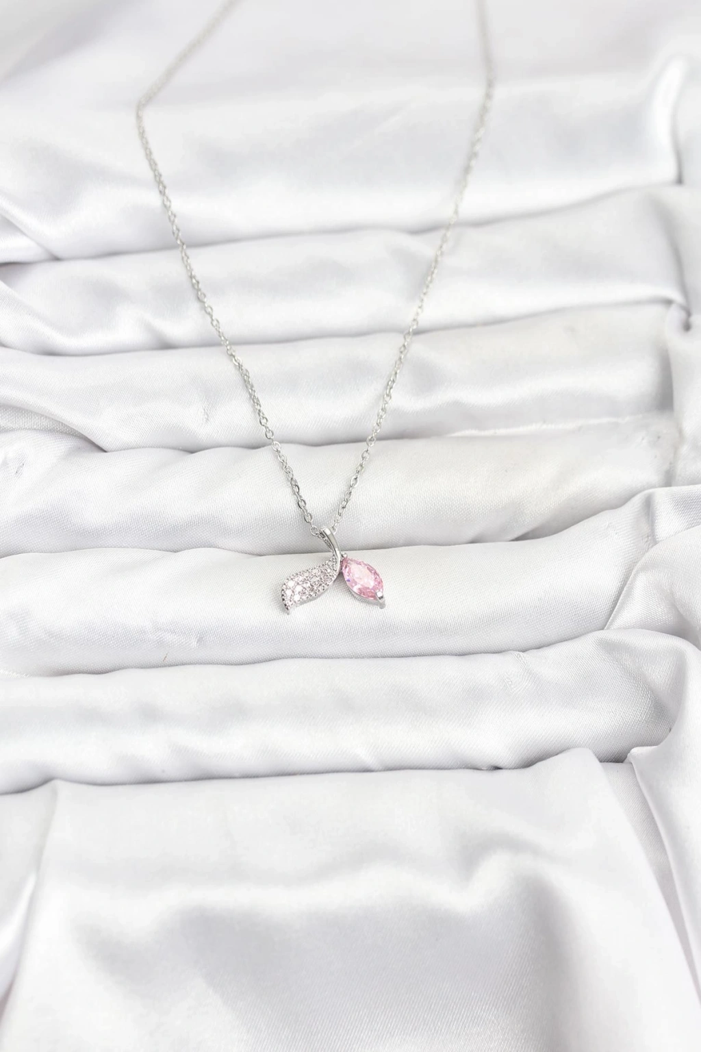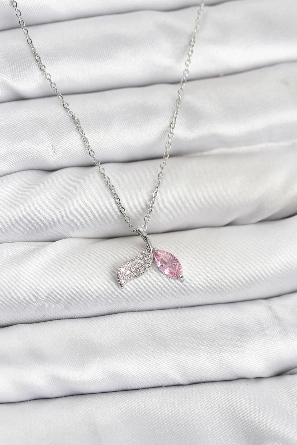316L Çelik Zincir Gümüş Renk Balık Kuyruğu Model Zirkon Taşlı Kadın Kolye
