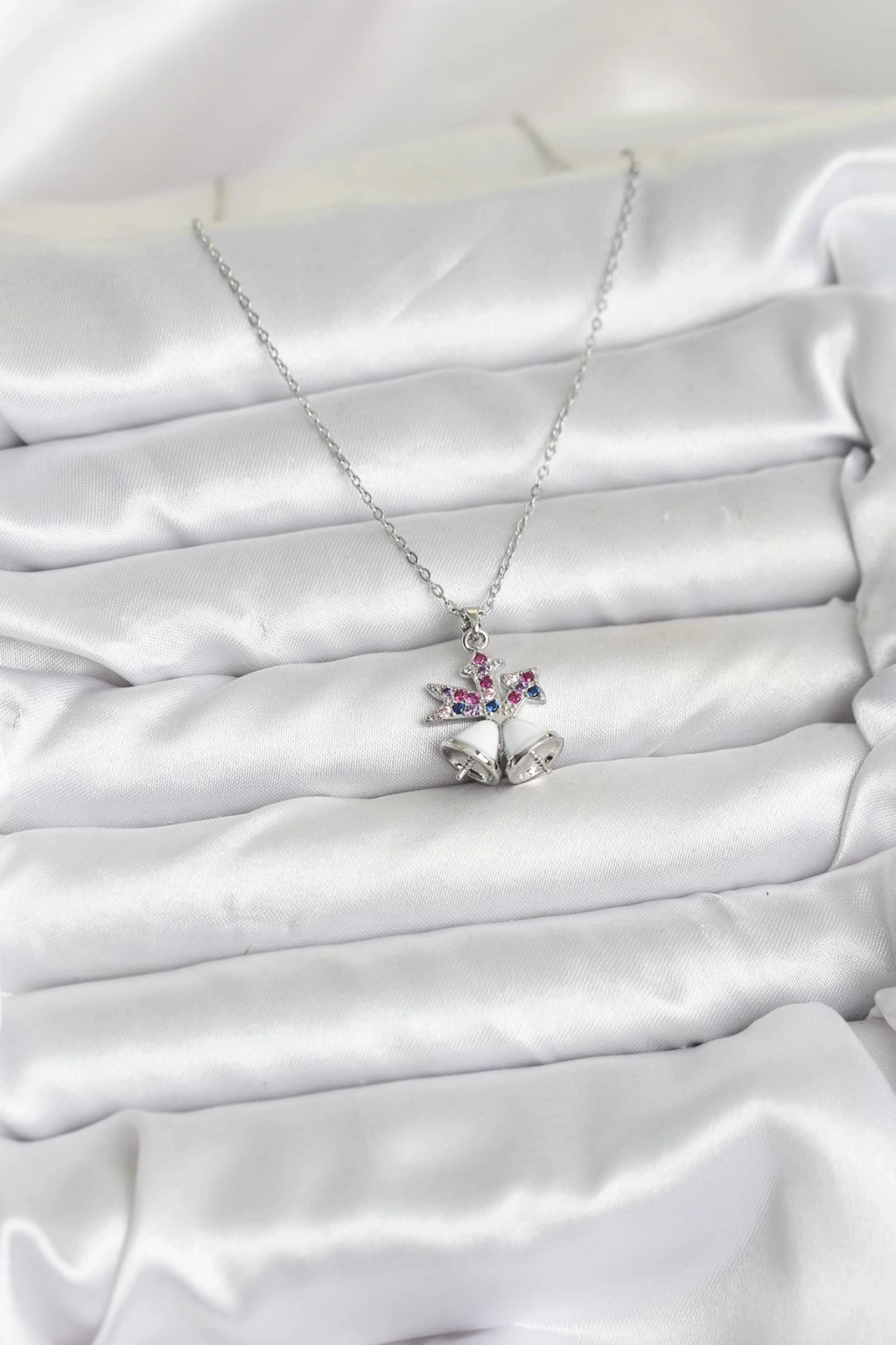 316L Çelik Zincir Gümüş Renk Chirtsmas Bell Model Yılbaşı Temalı Kadın Kolye