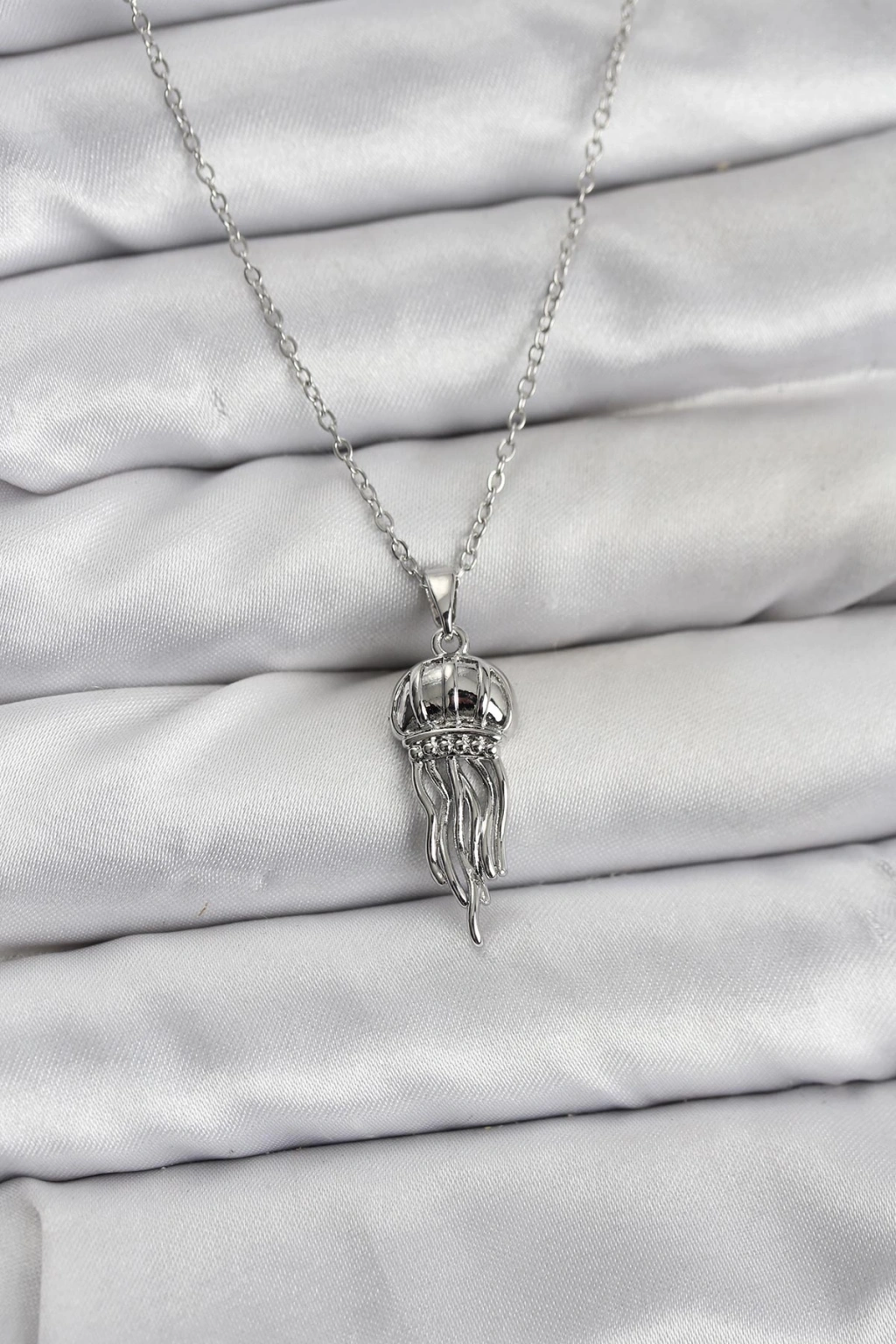 316L Çelik Zincir Gümüş Renk Deniz Anası Model Zirkon Taşlı Kadın Kolye