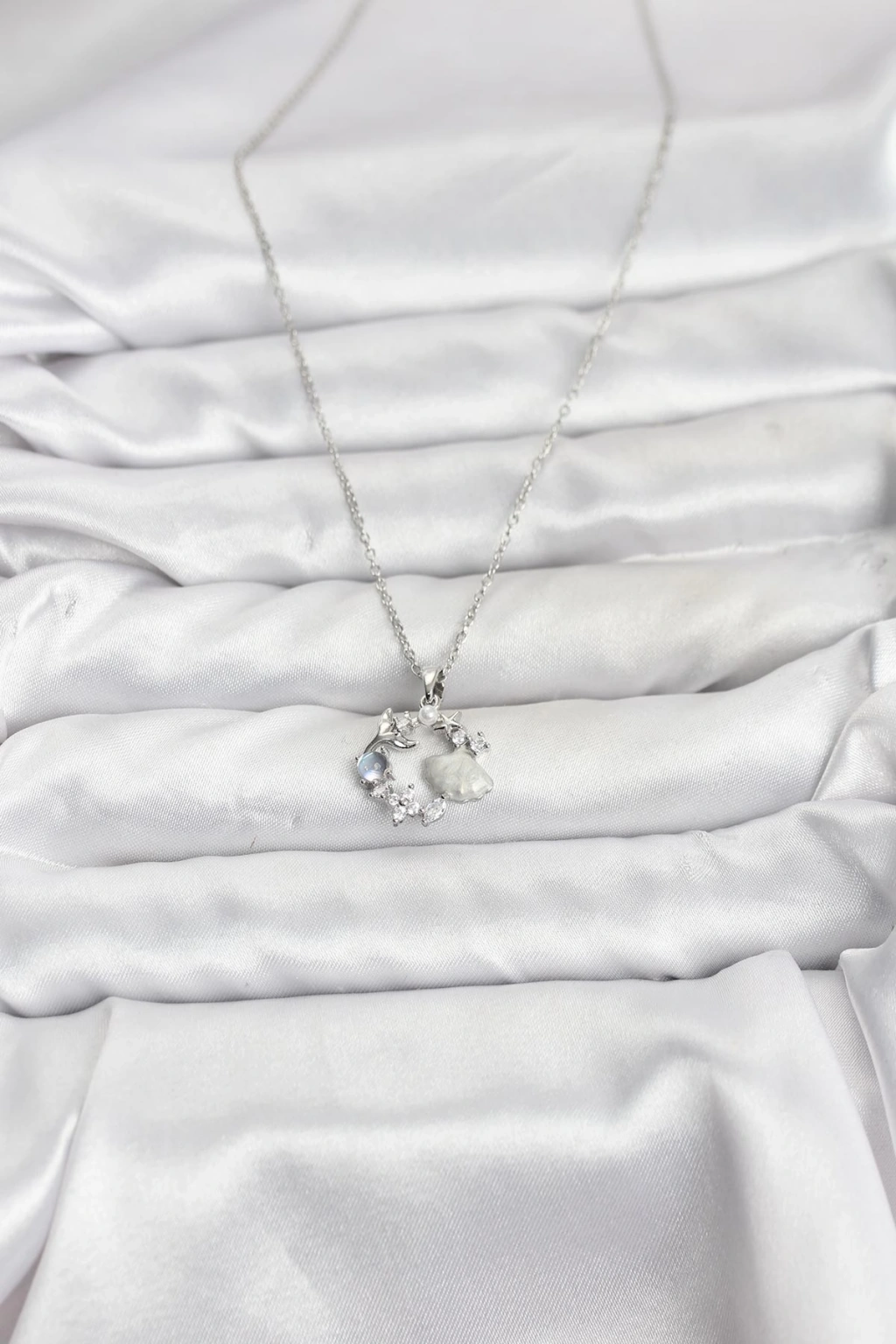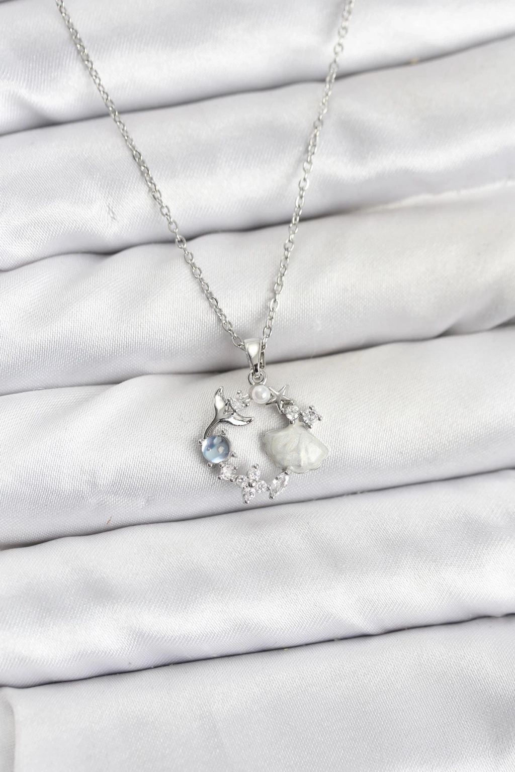 316L Çelik Zincir Gümüş Renk Deniz Tema Model Zirkon Taşlı Kadın Kolye