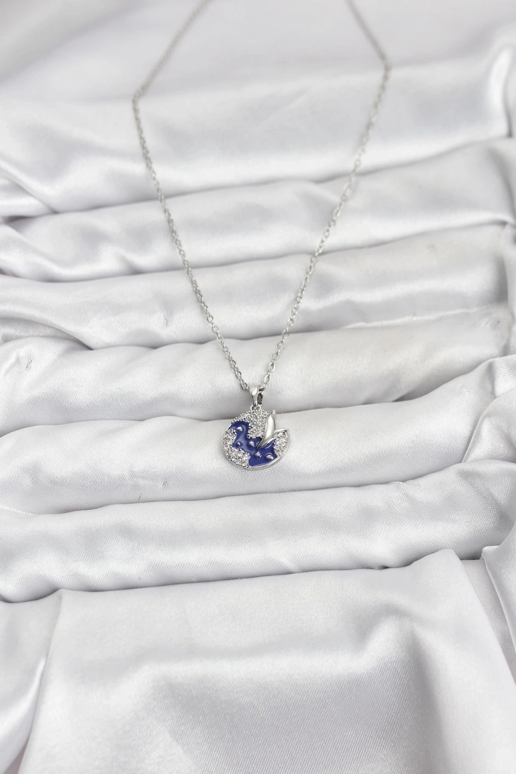 316L Çelik Zincir Gümüş Renk Gece Model Zirkon Taşlı Kadın Kolye